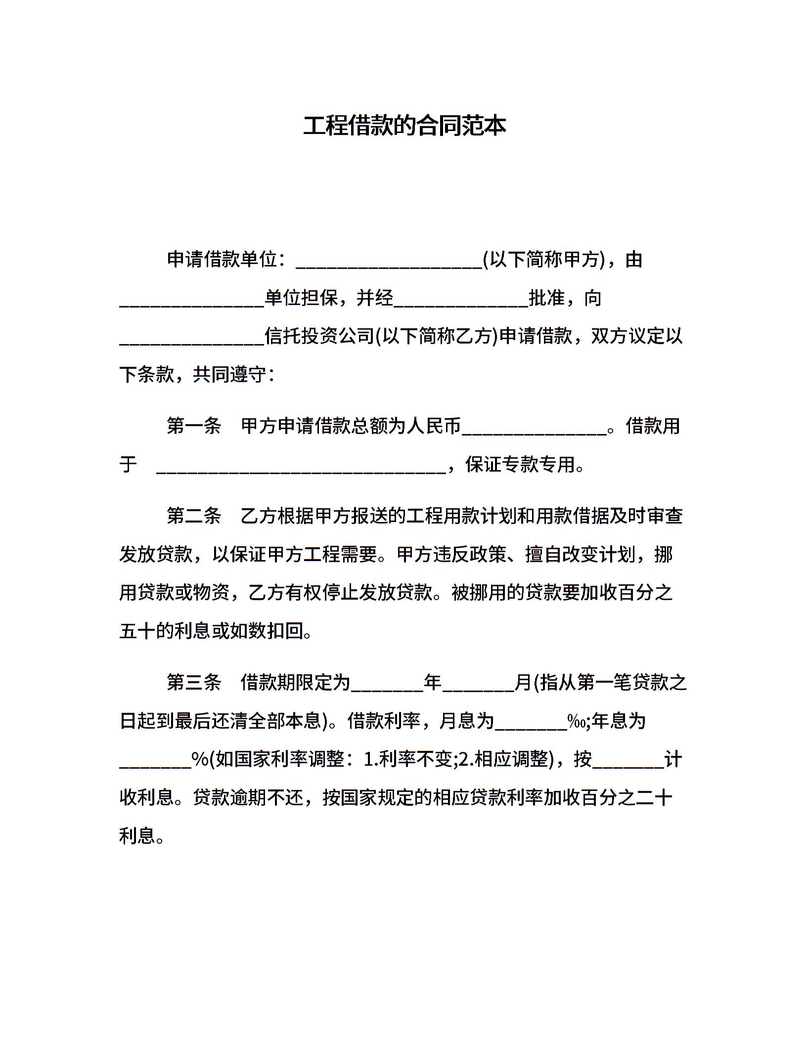 工程借款的合同范本
