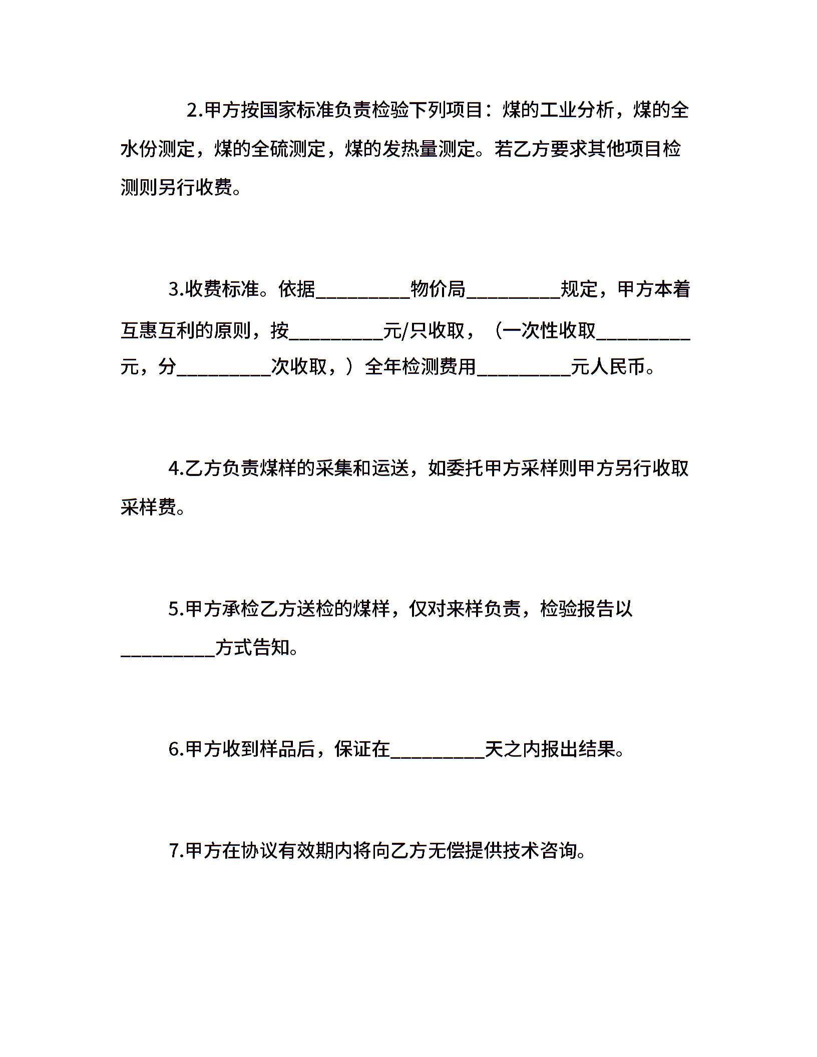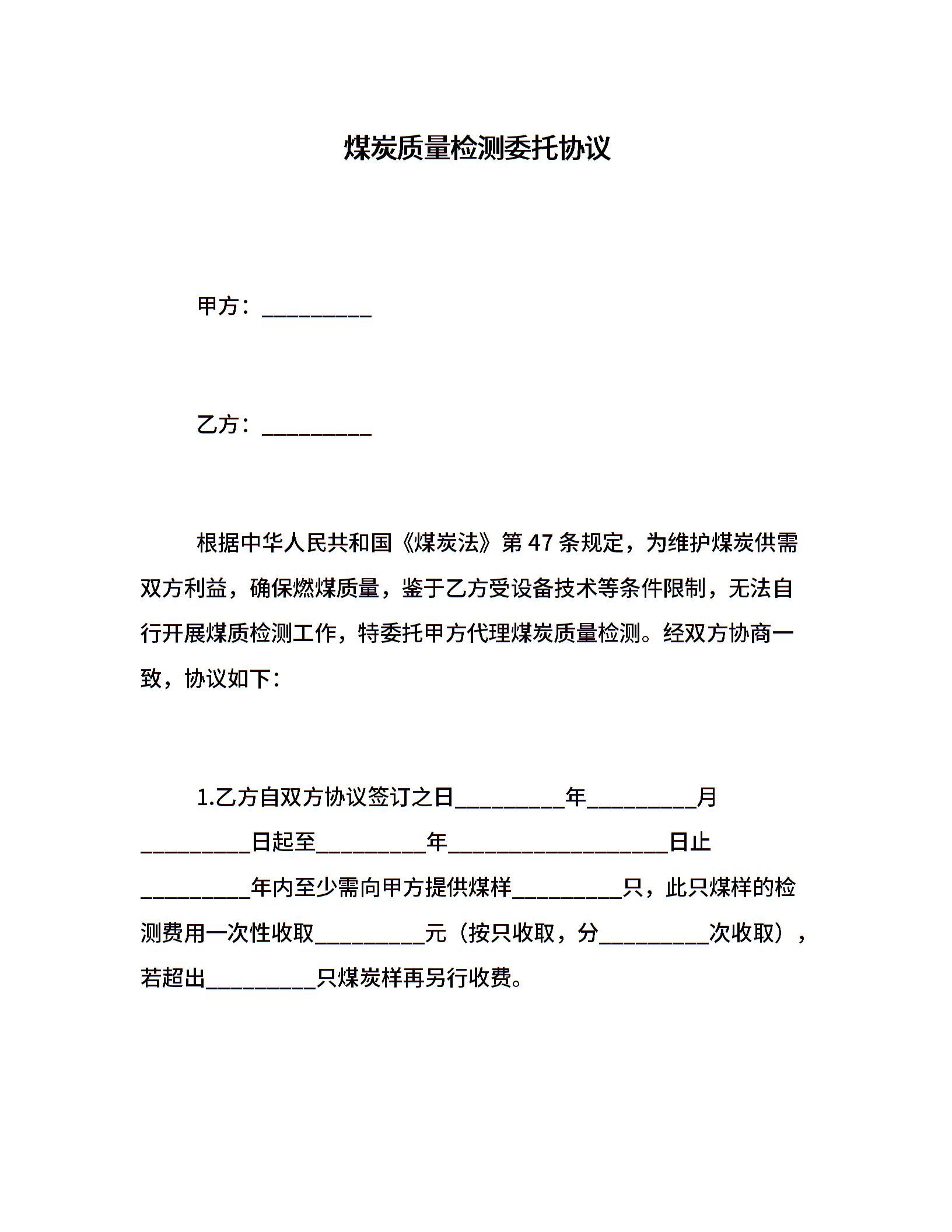 煤炭质量检测委托协议