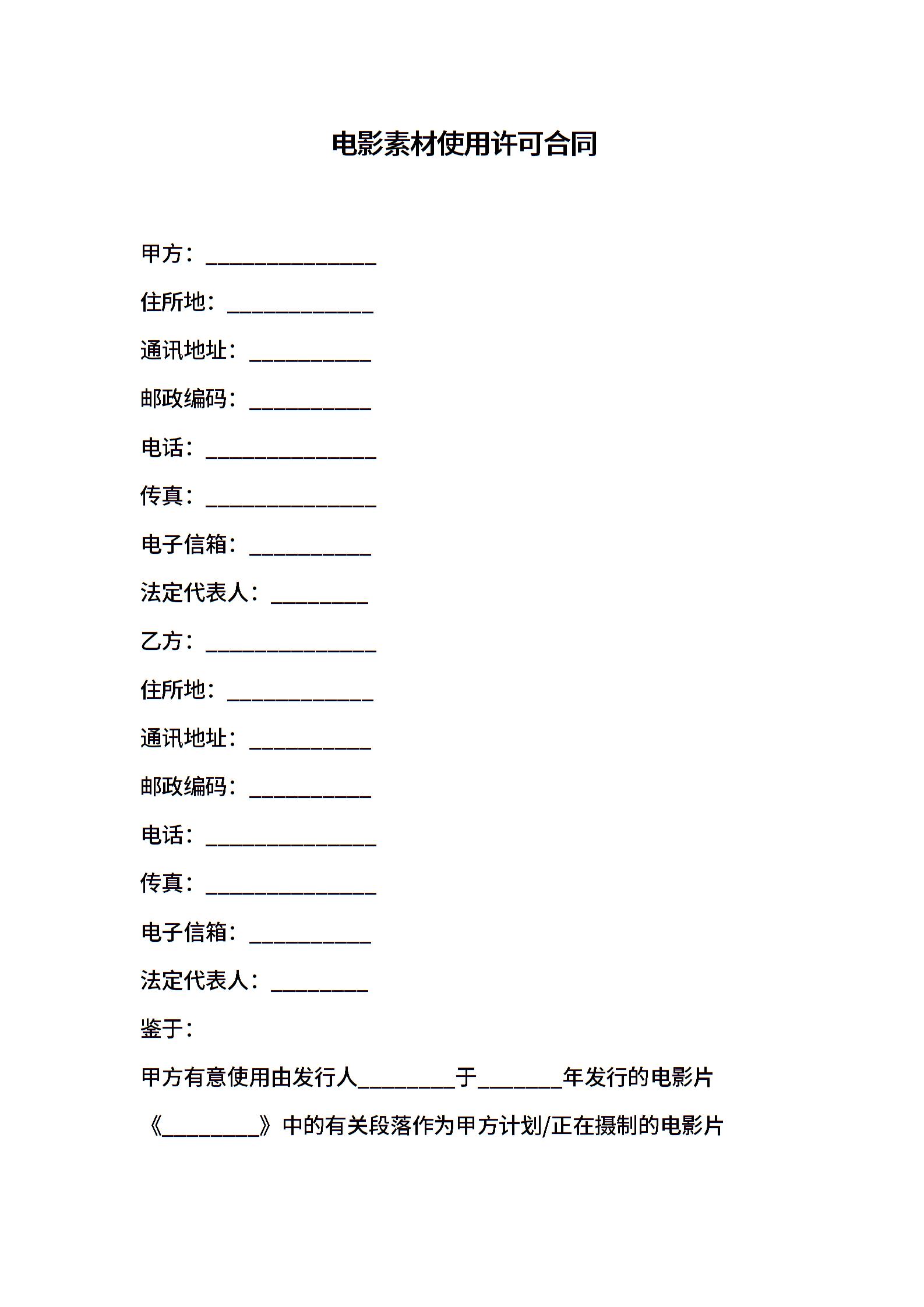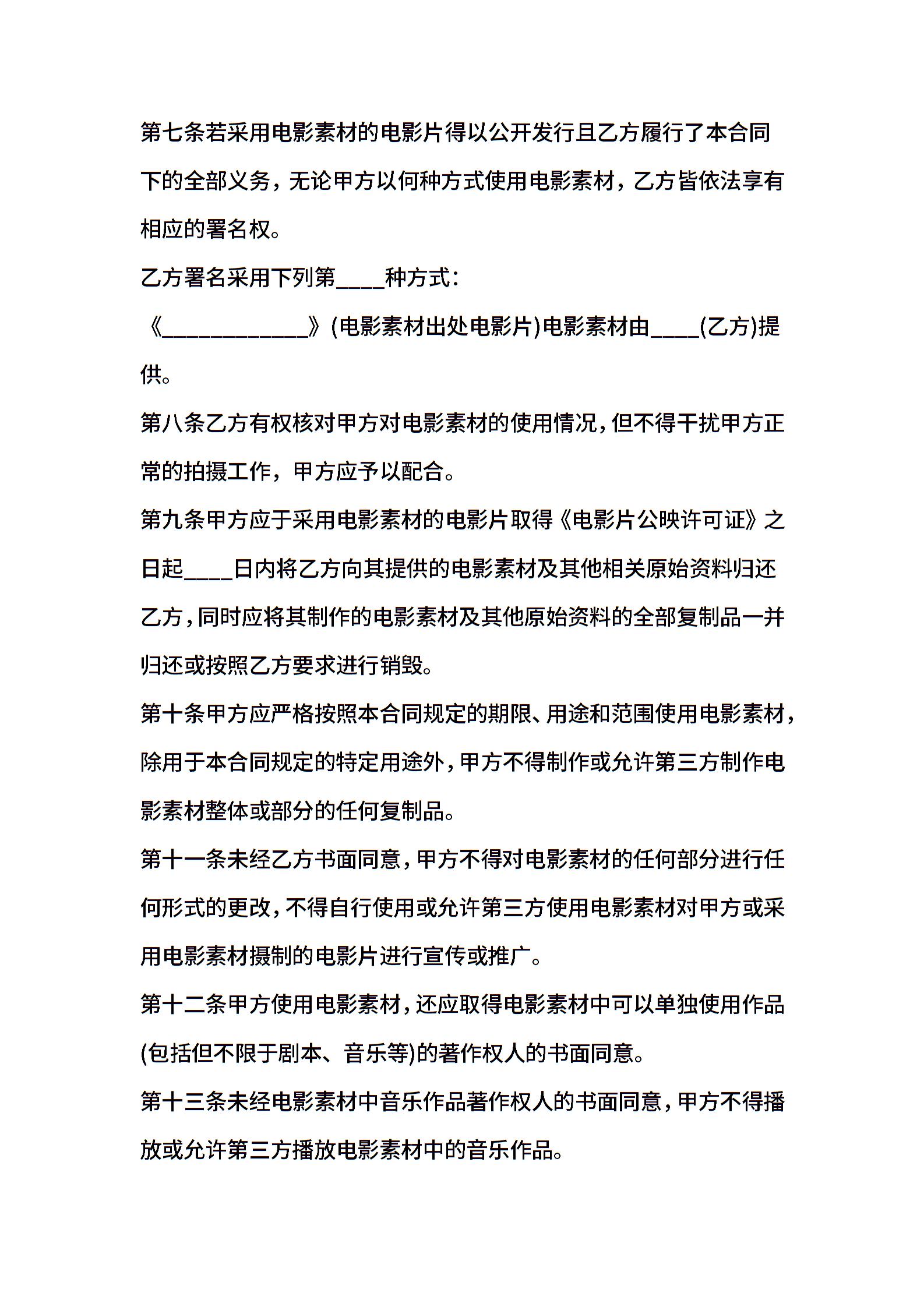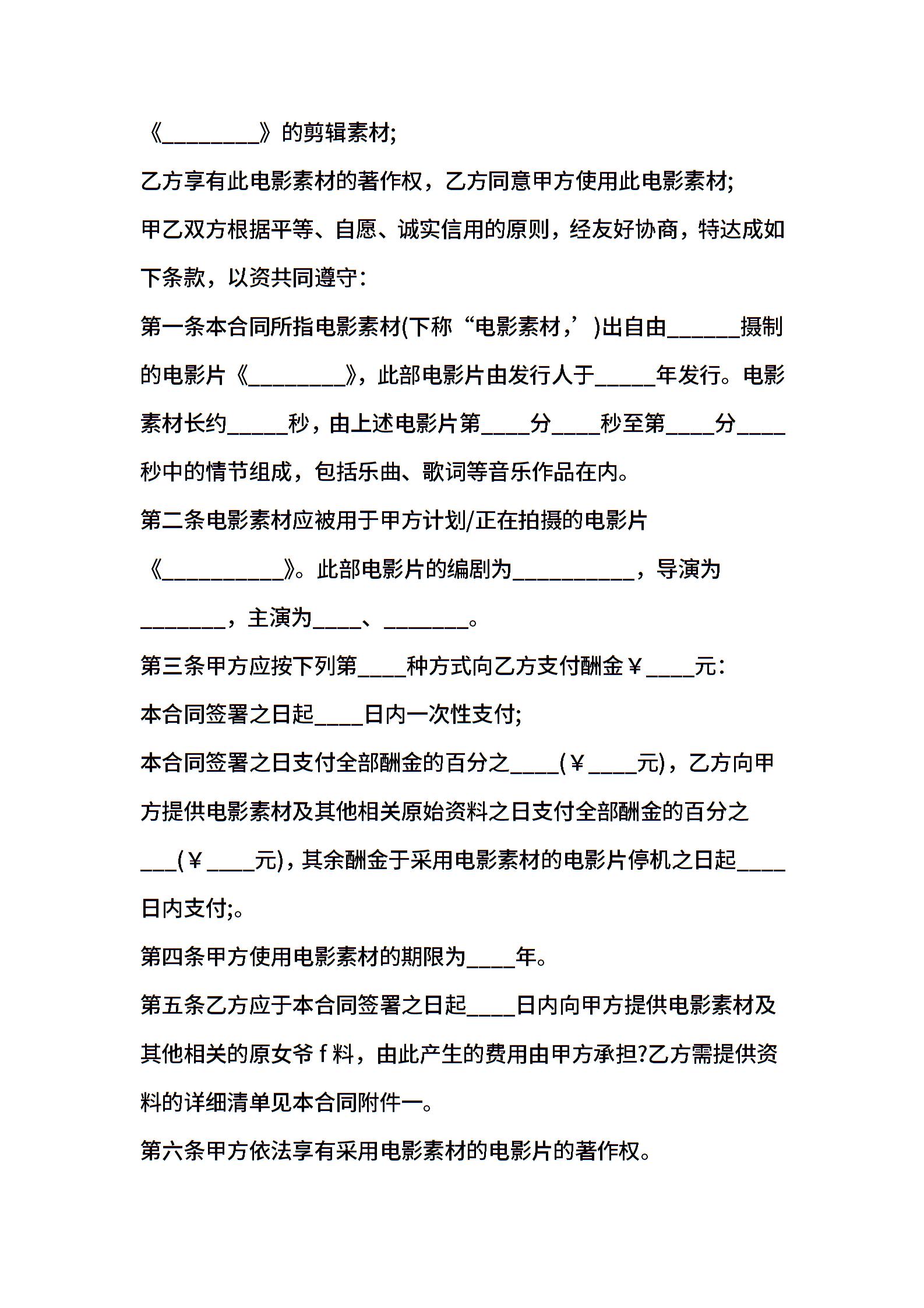 电影素材使用许可合同