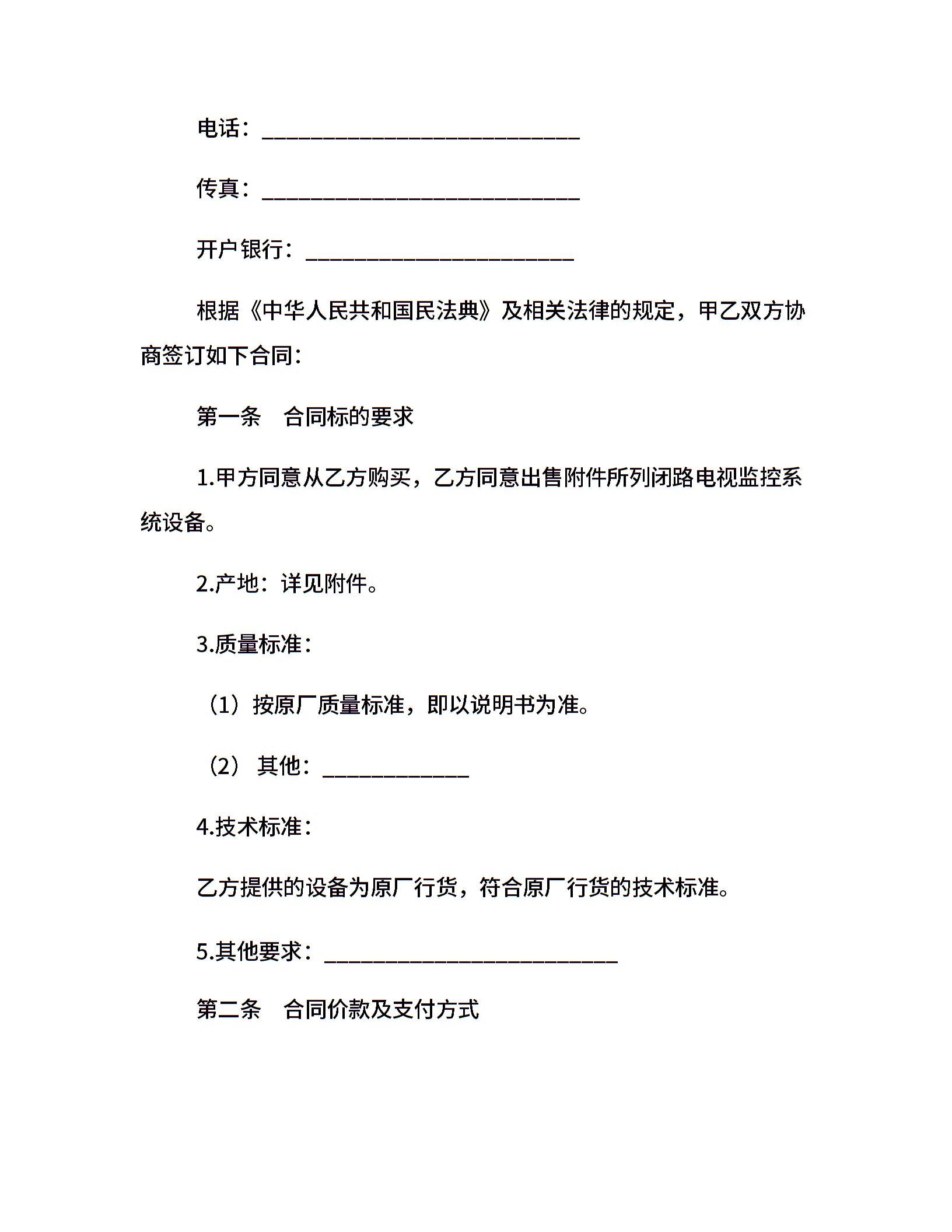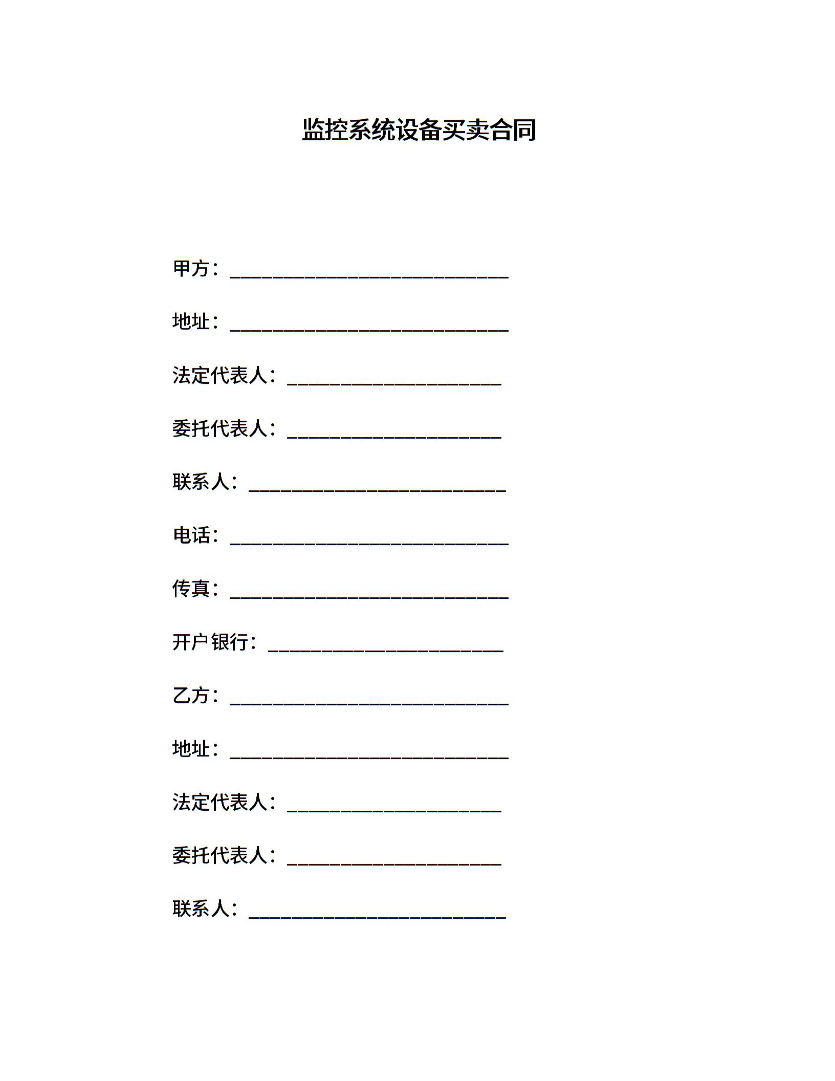 监控系统设备买卖合同