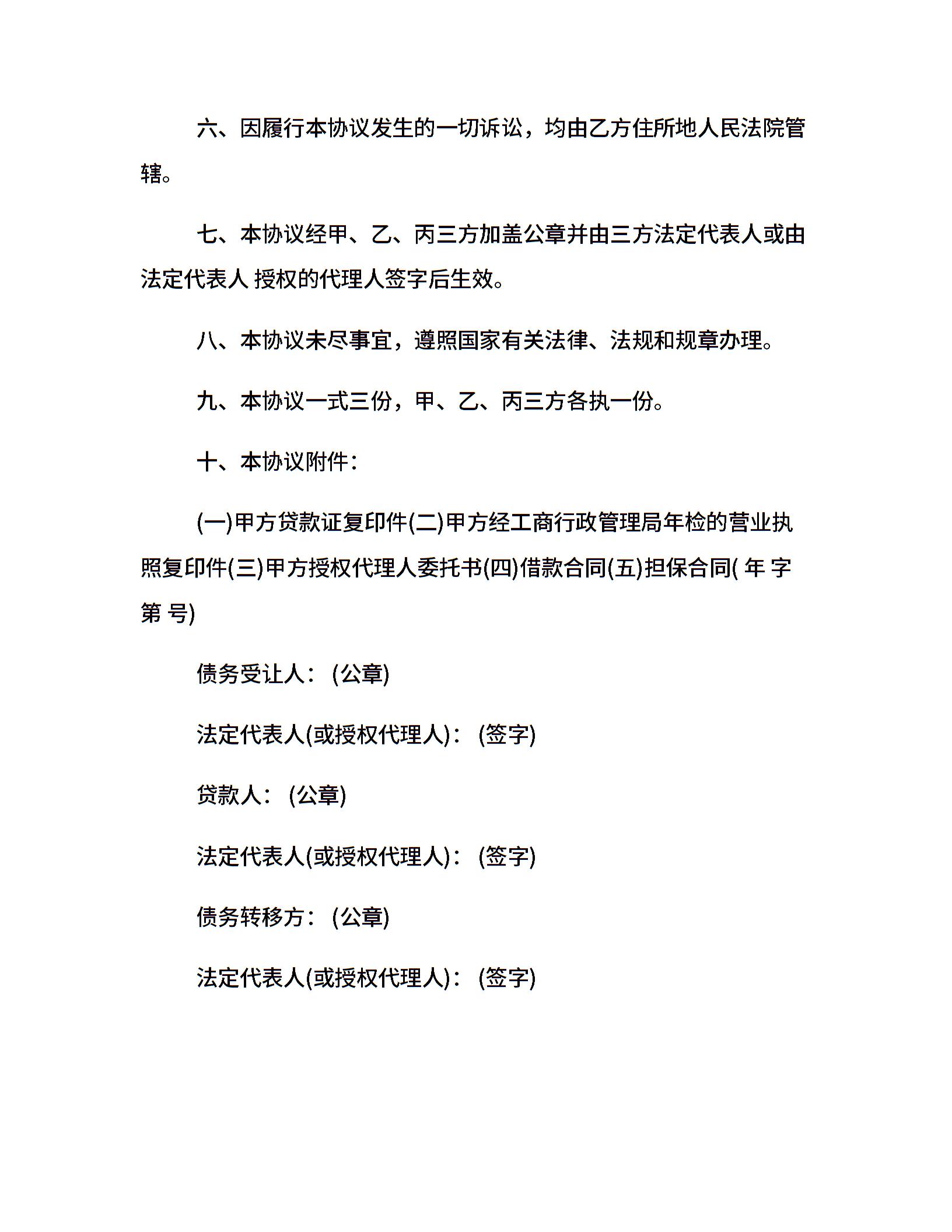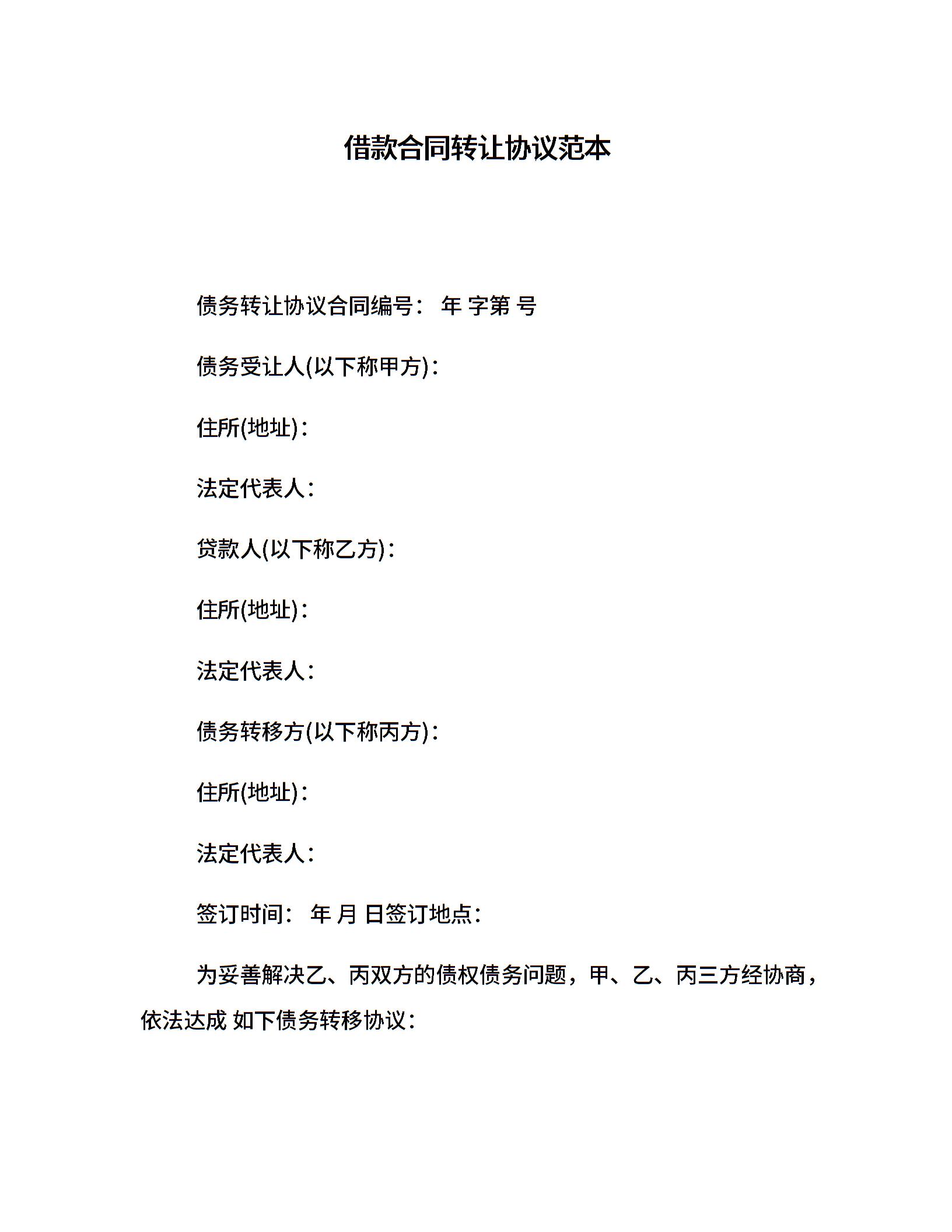 借款合同转让协议范本