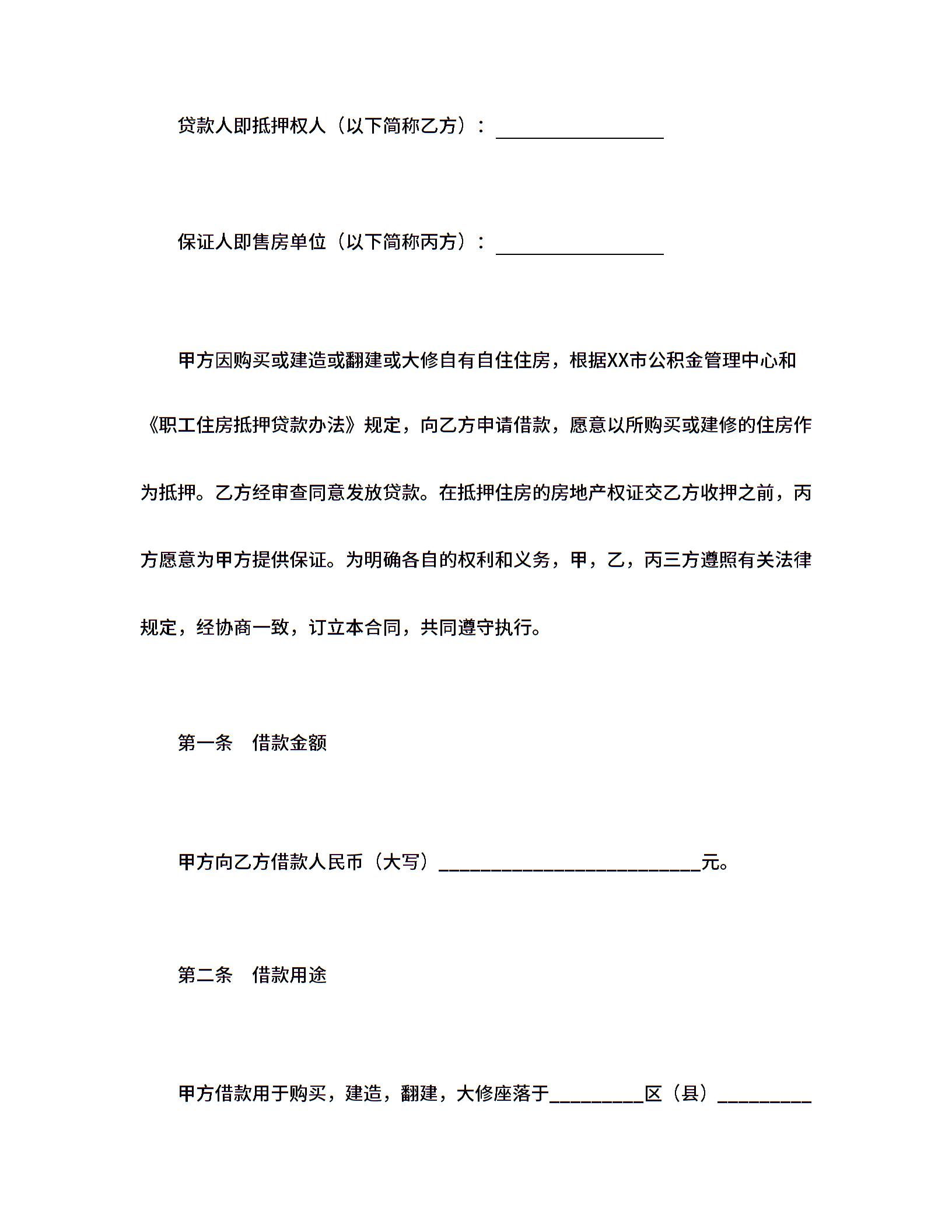 个人住房公积金借款合同
