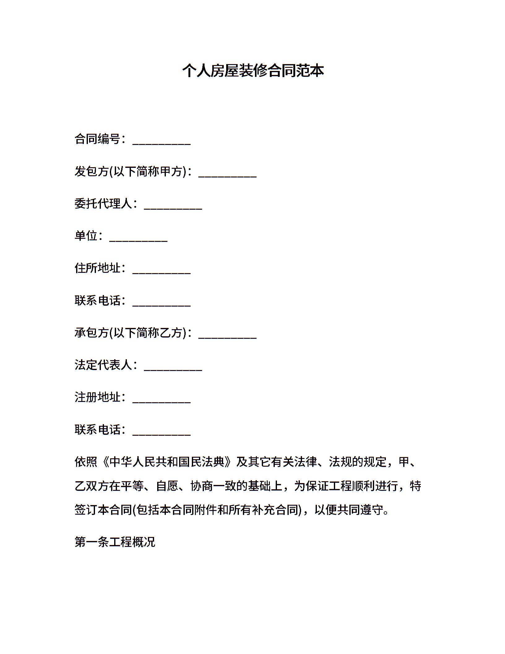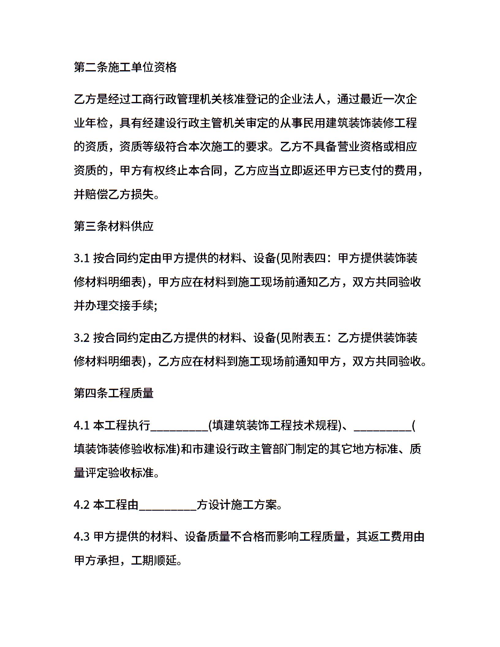 个人房屋装修合同范本 (3)