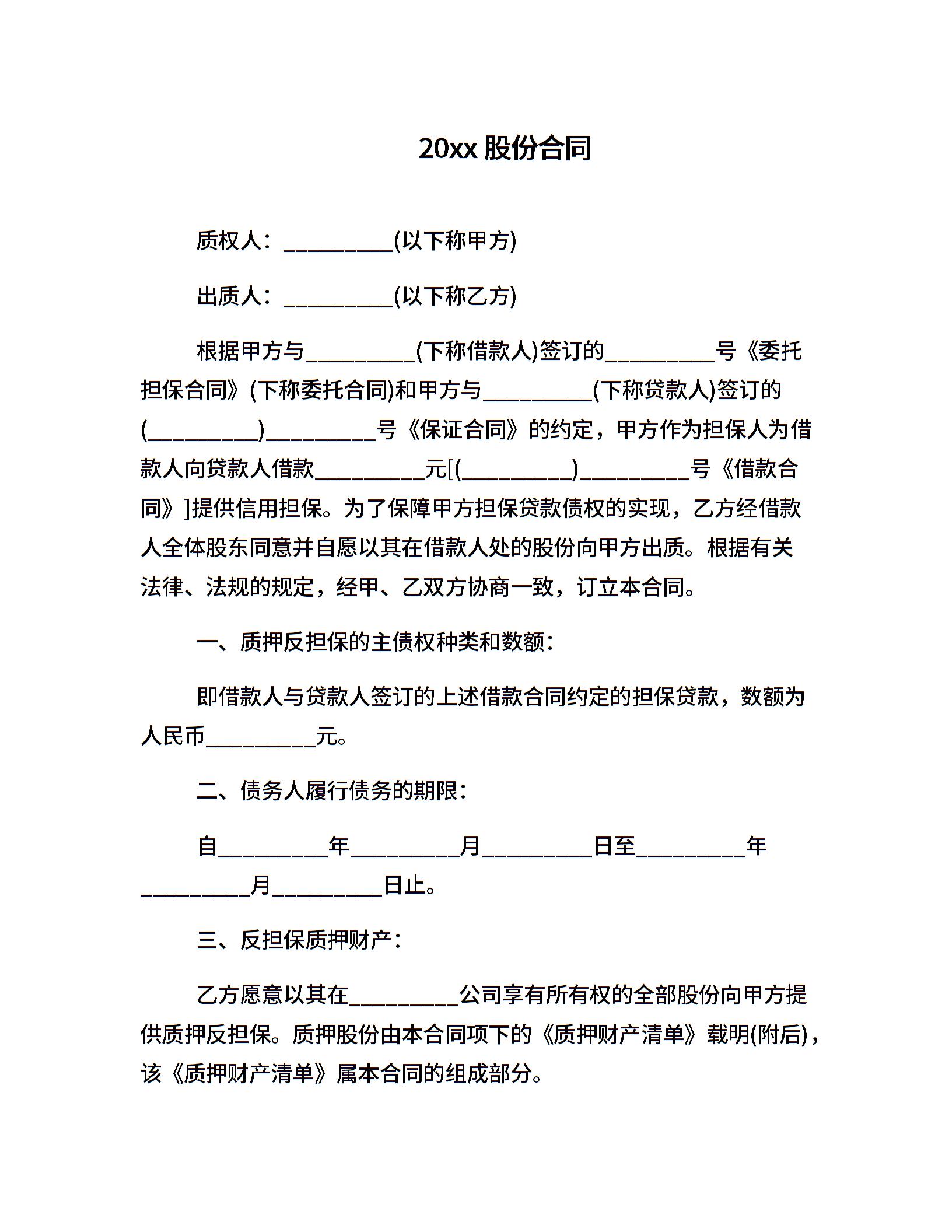 20xx股份合同