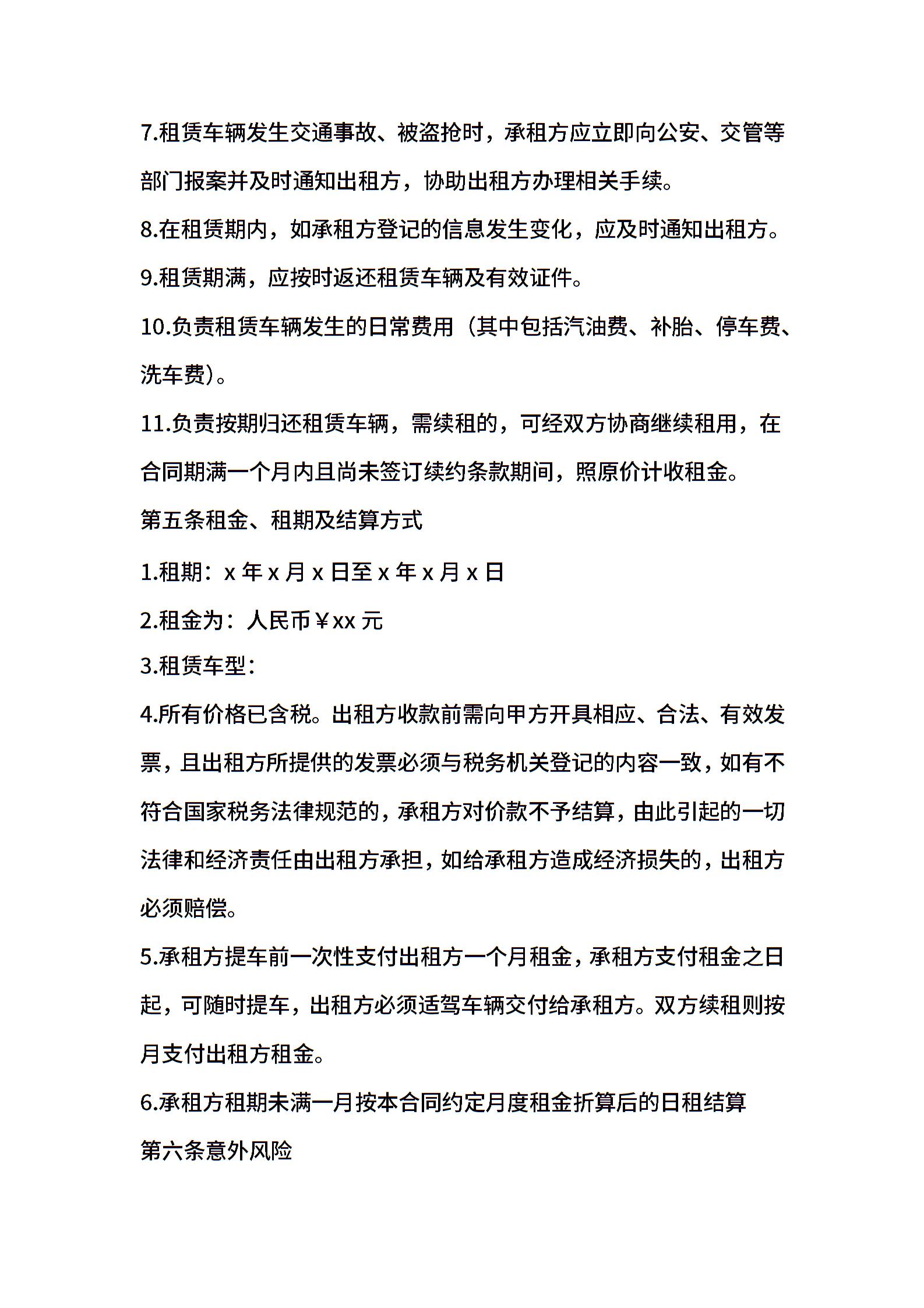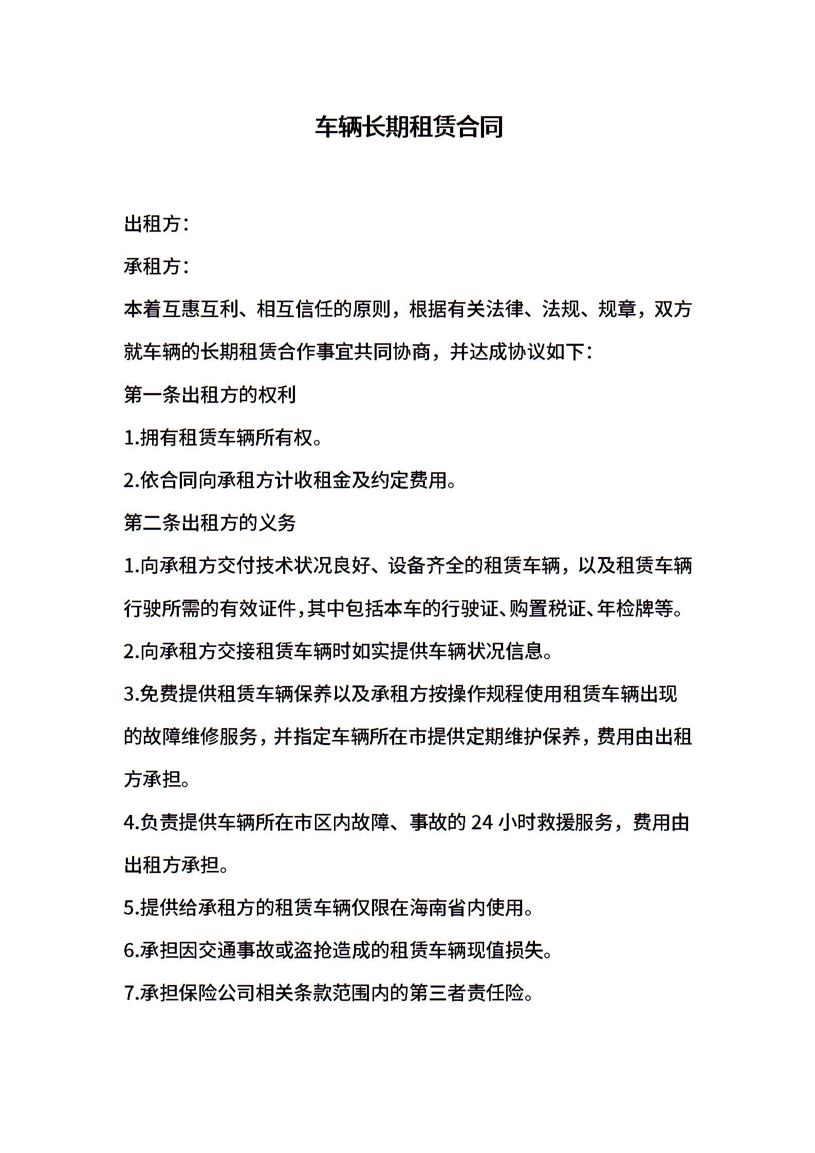 车辆长期租赁合同