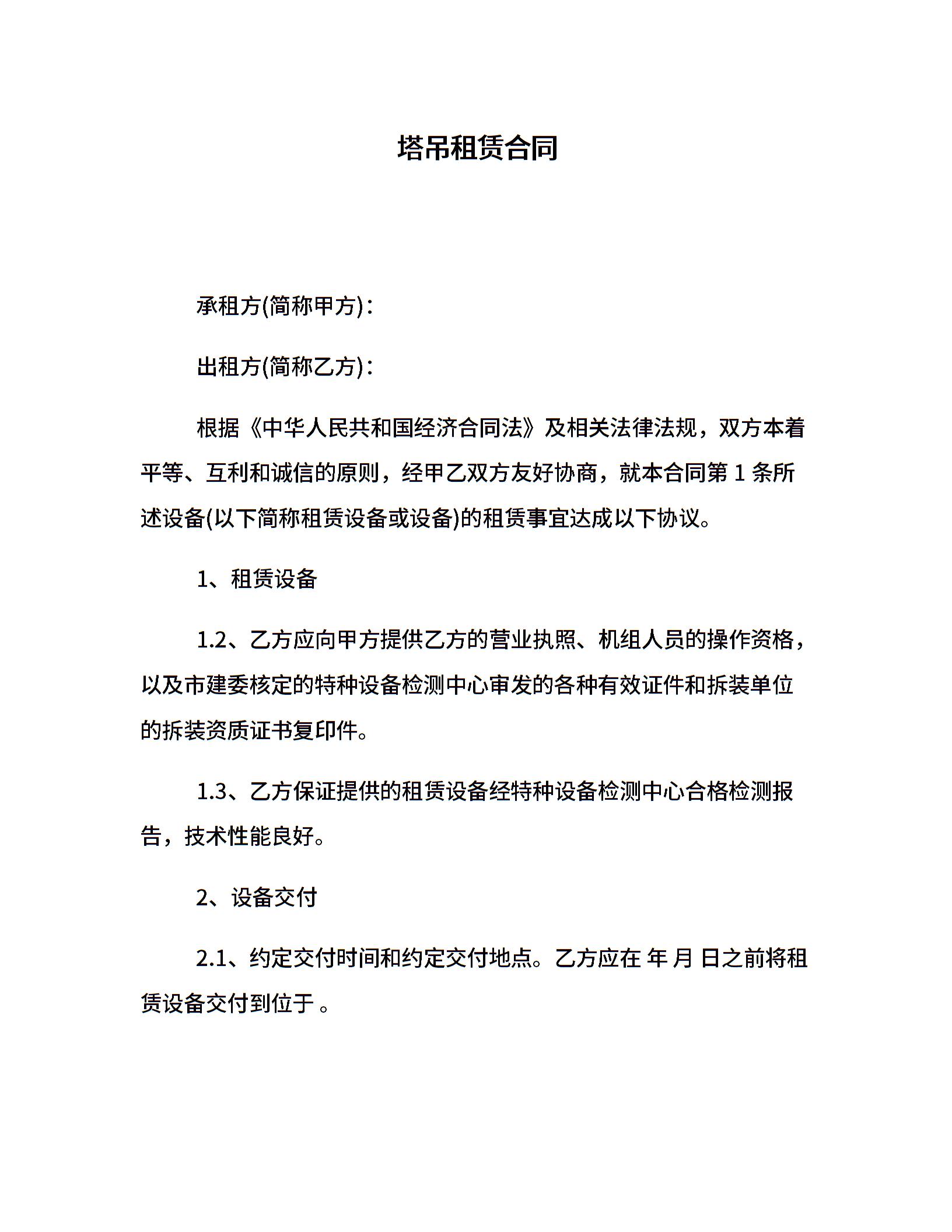 塔吊租赁合同