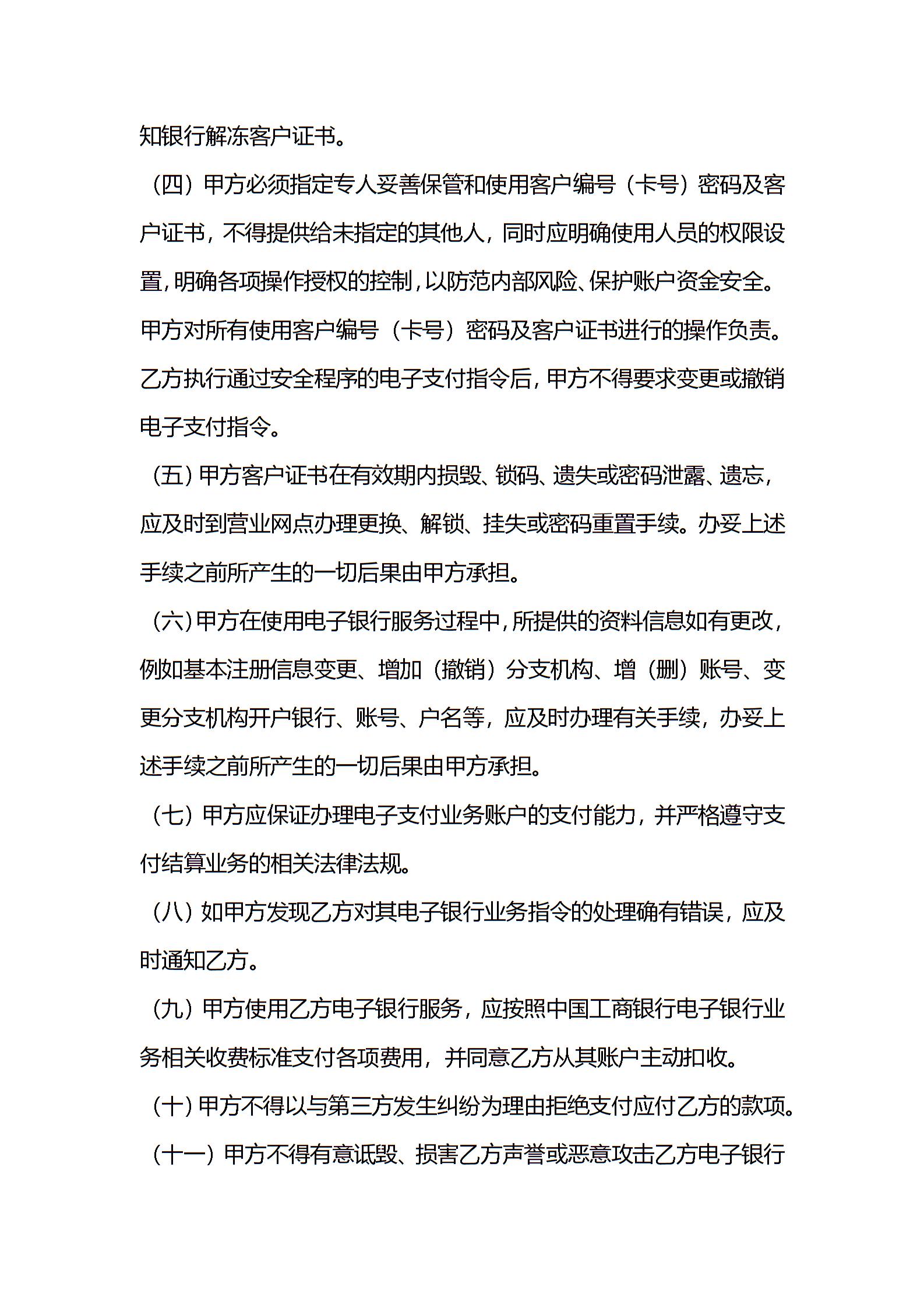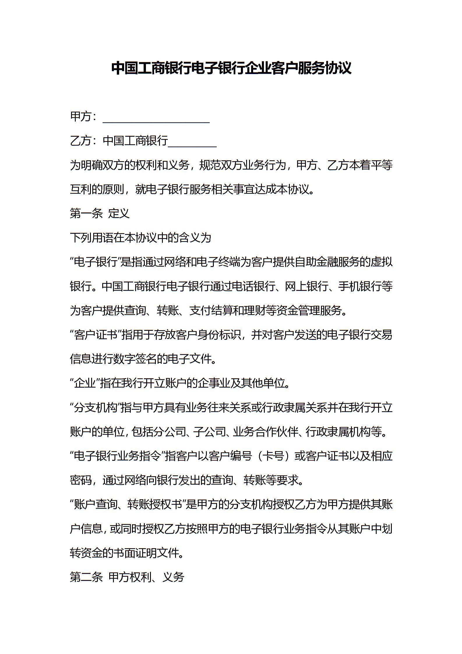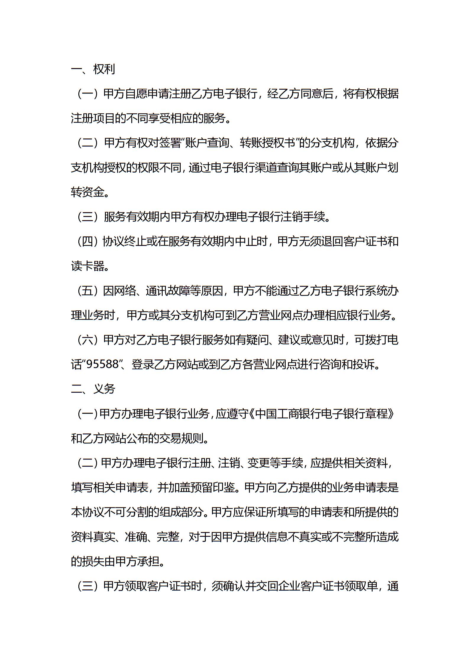 中国工商银行电子银行企业客户服务协议