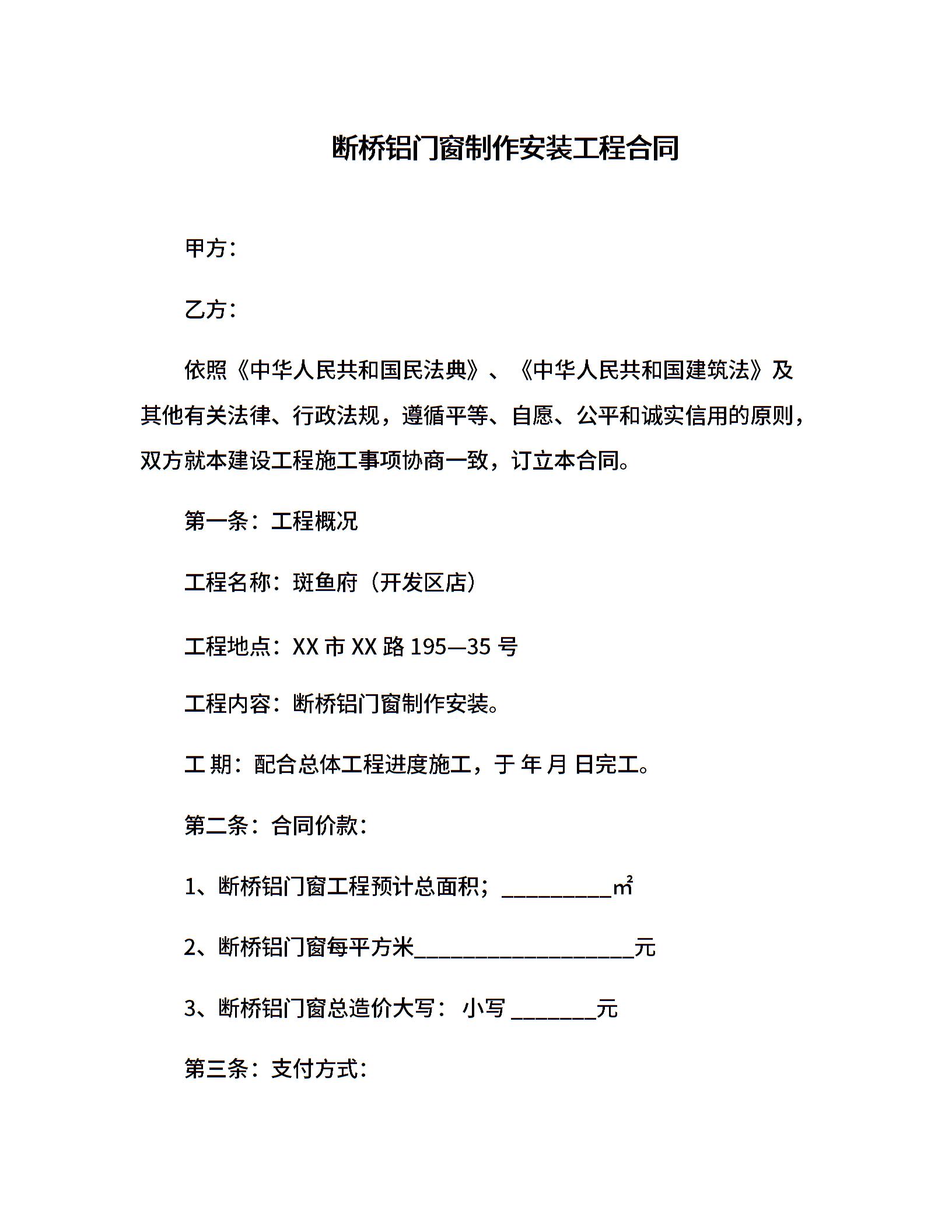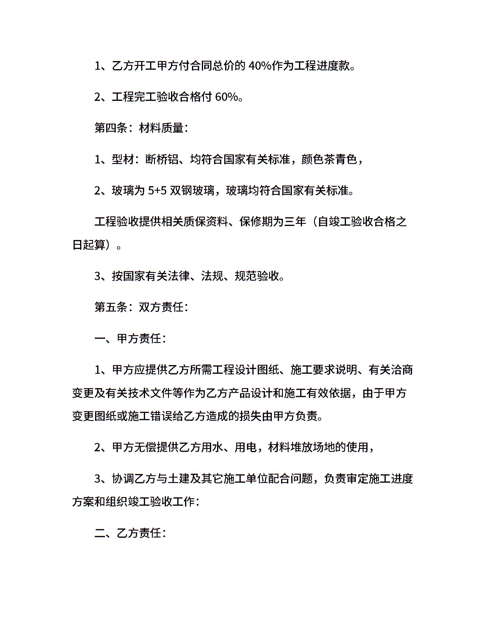 断桥铝门窗制作安装工程合同