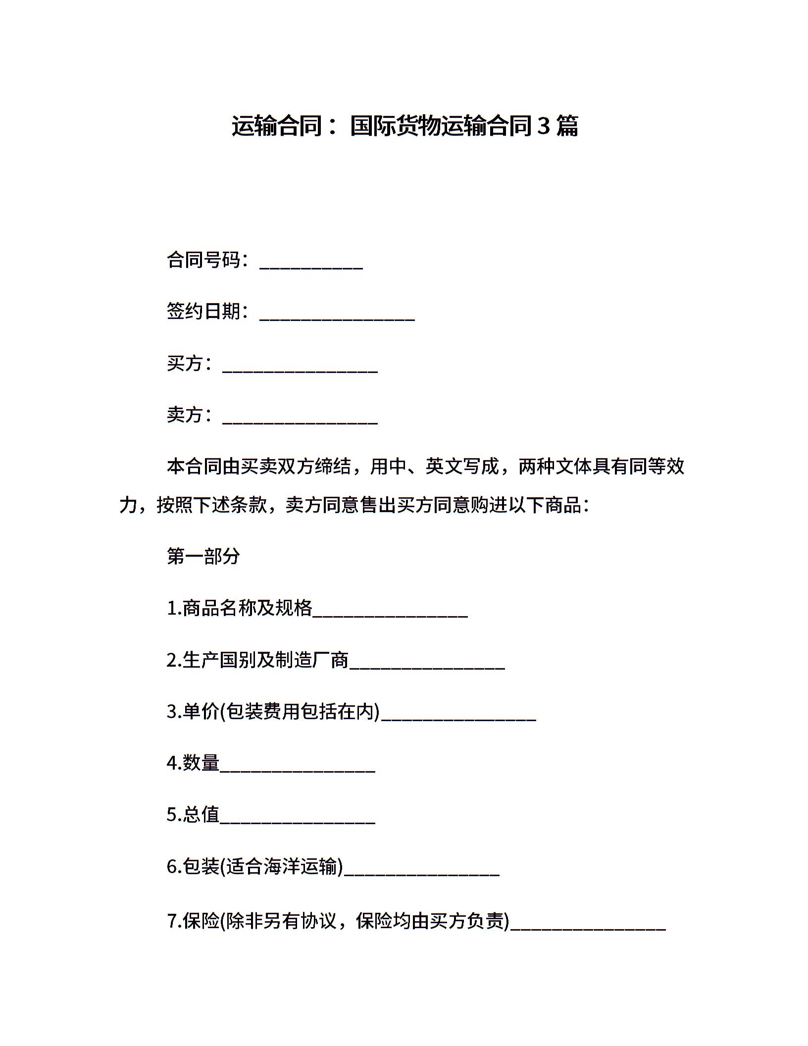 运输合同 :国际货物运输合同3篇