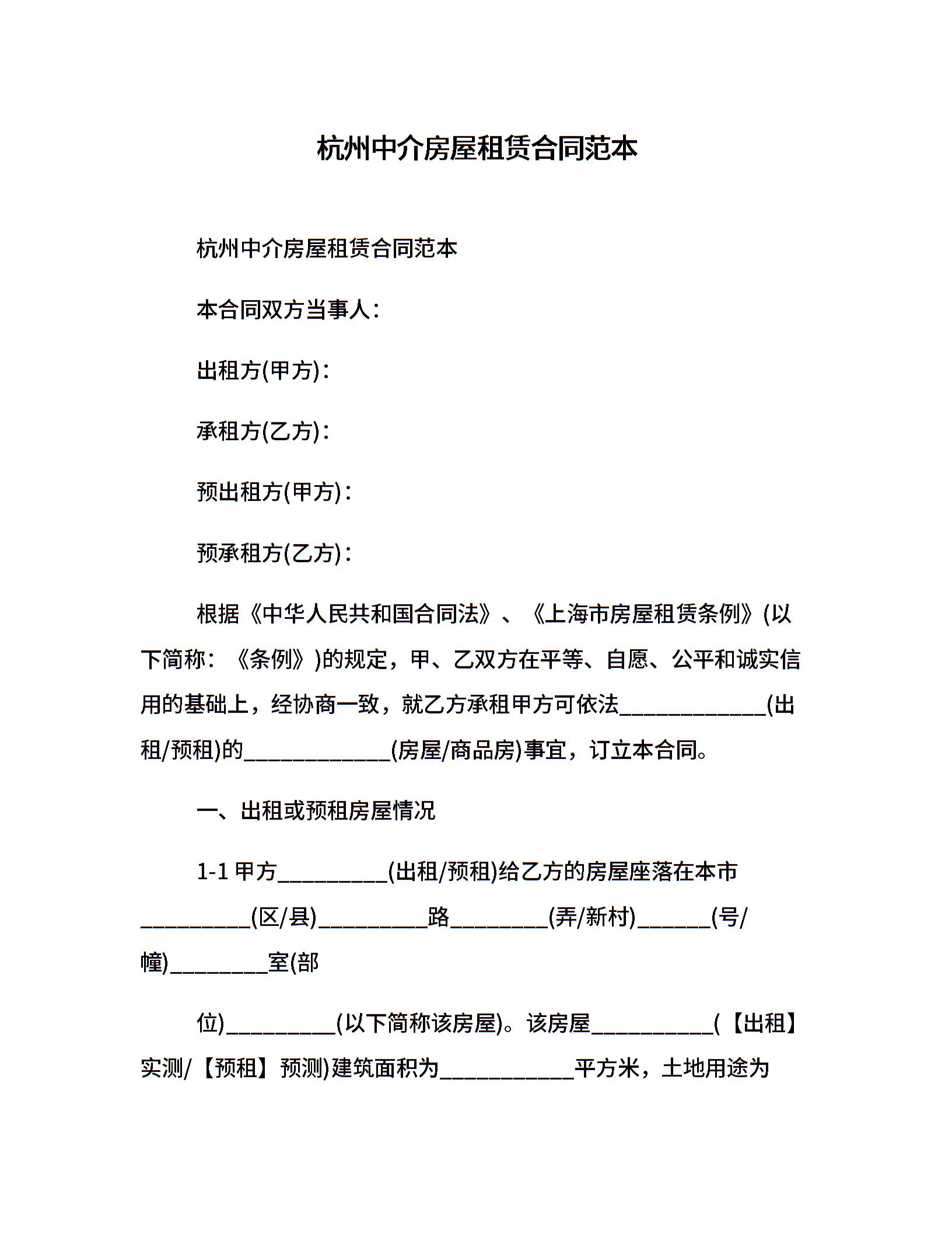 杭州中介房屋租赁合同范本