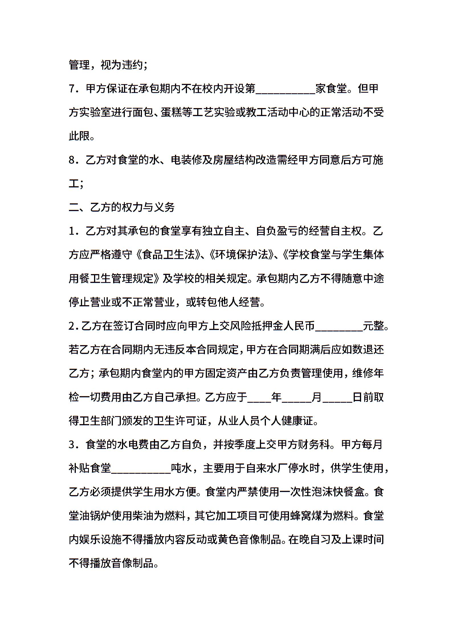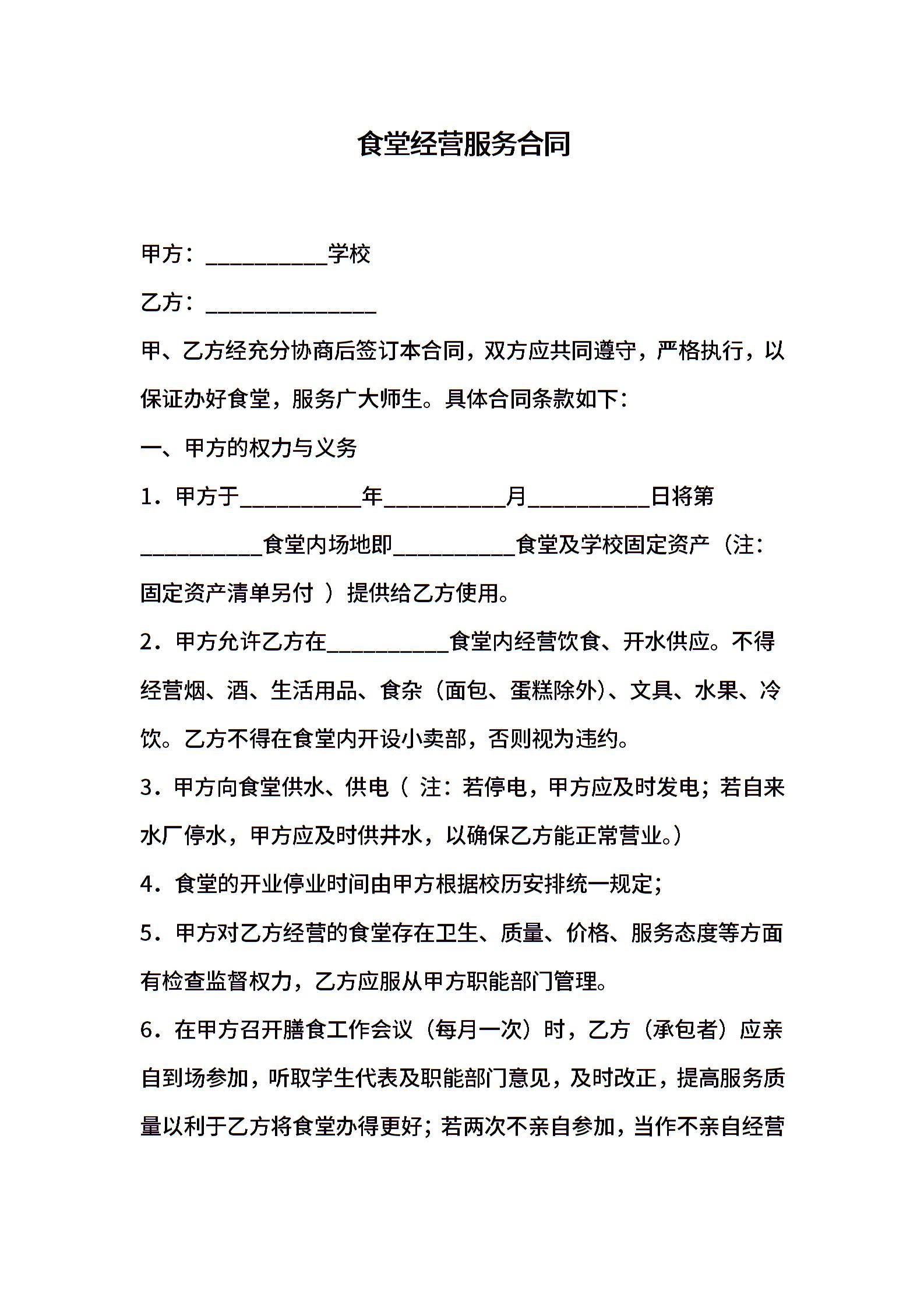 食堂经营服务合同