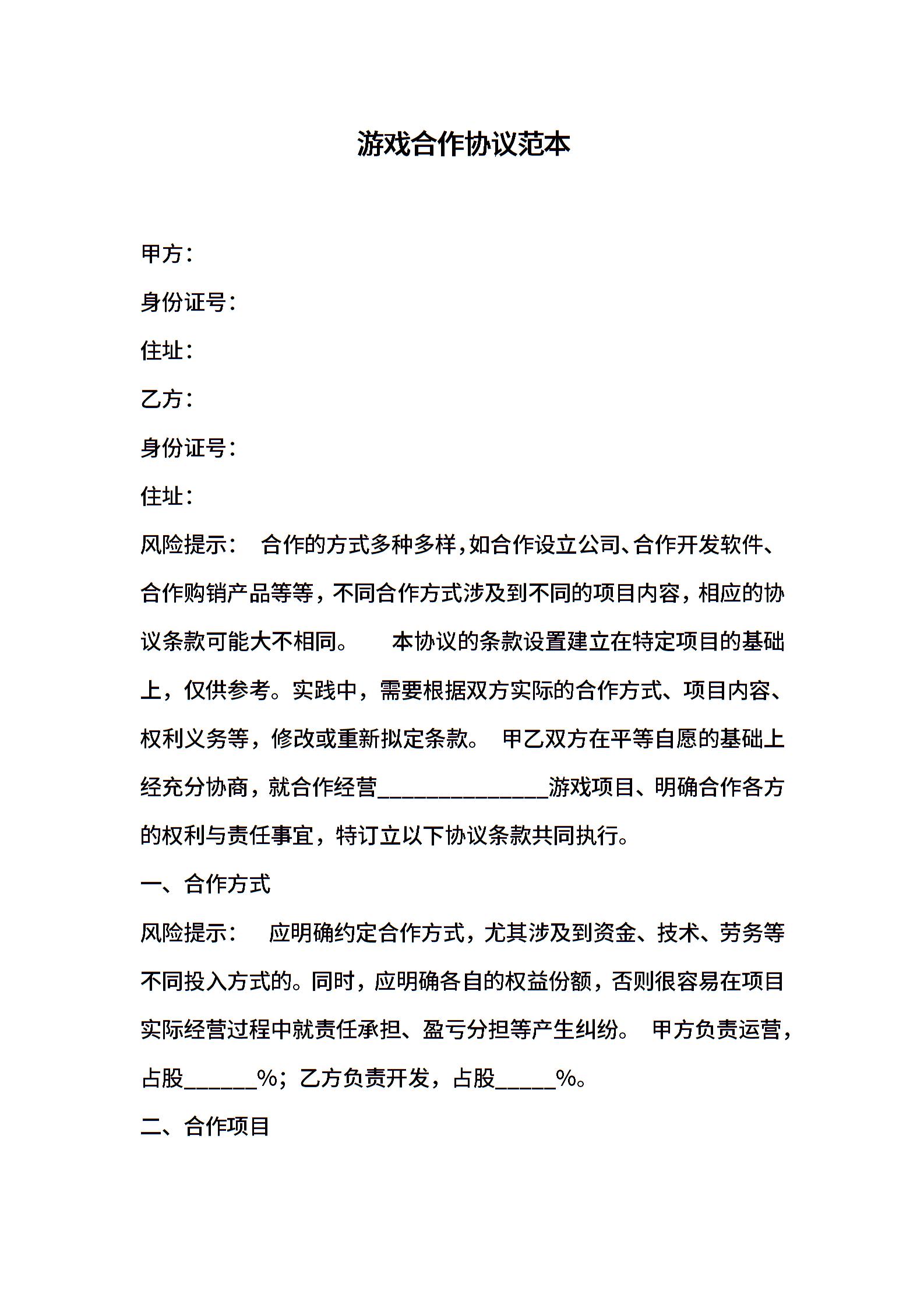 当前位置:量子办公 > 合同模板 > 游戏合同 >