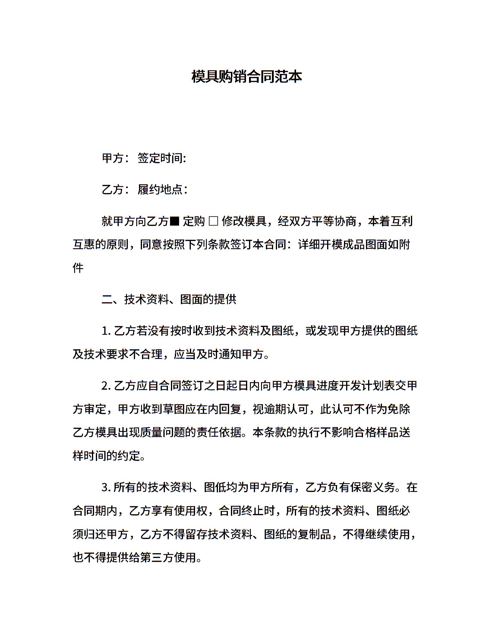 模具购销合同范本