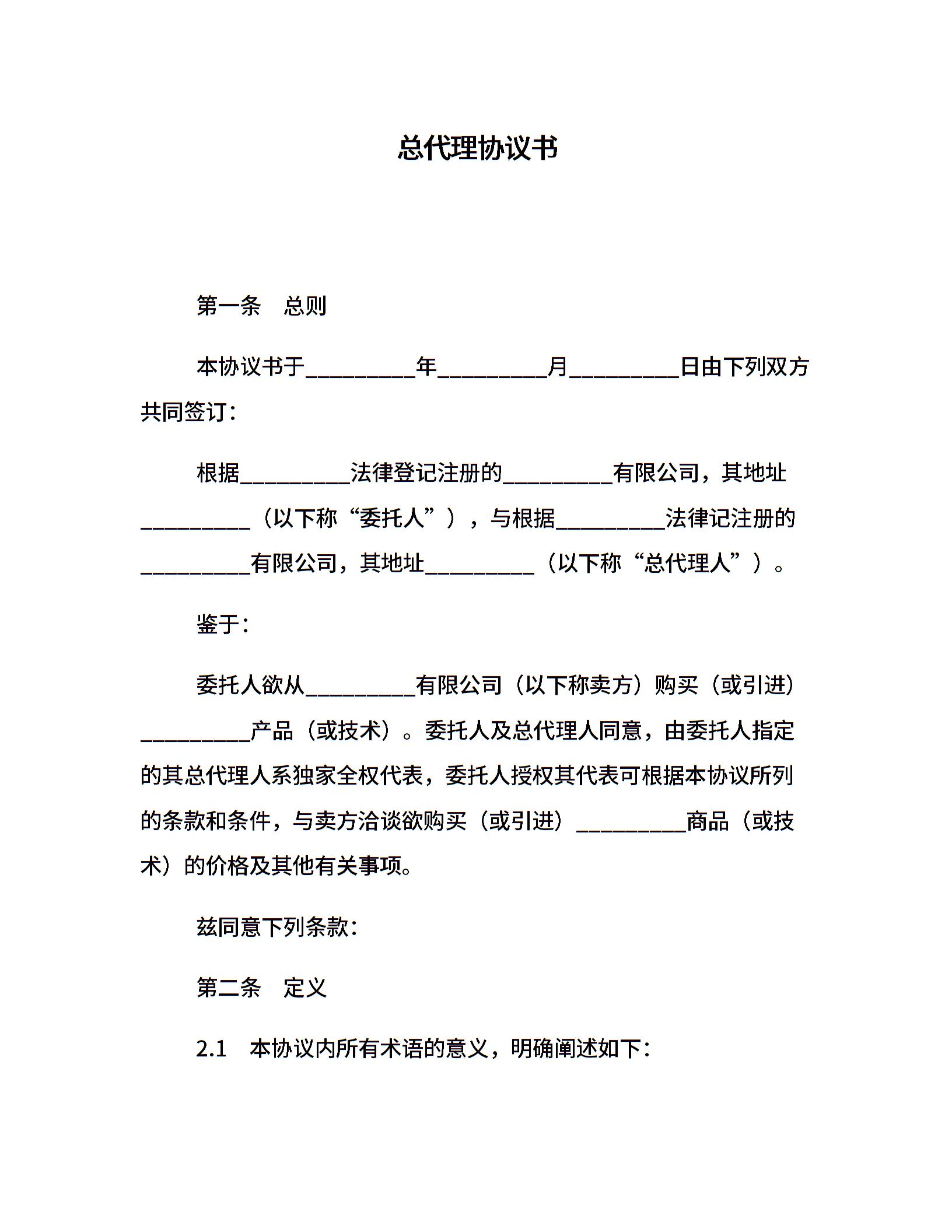总代理协议书