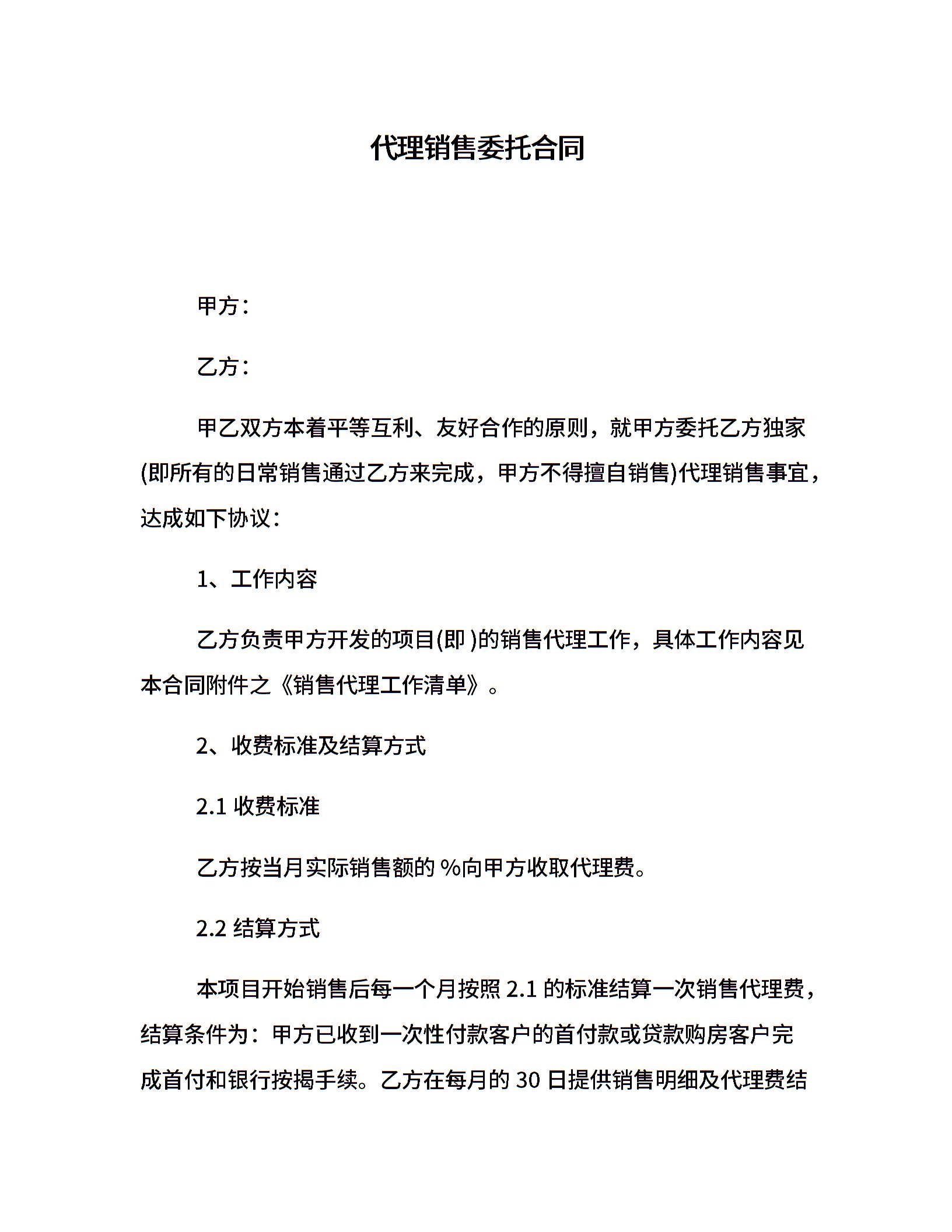 代理销售委托合同
