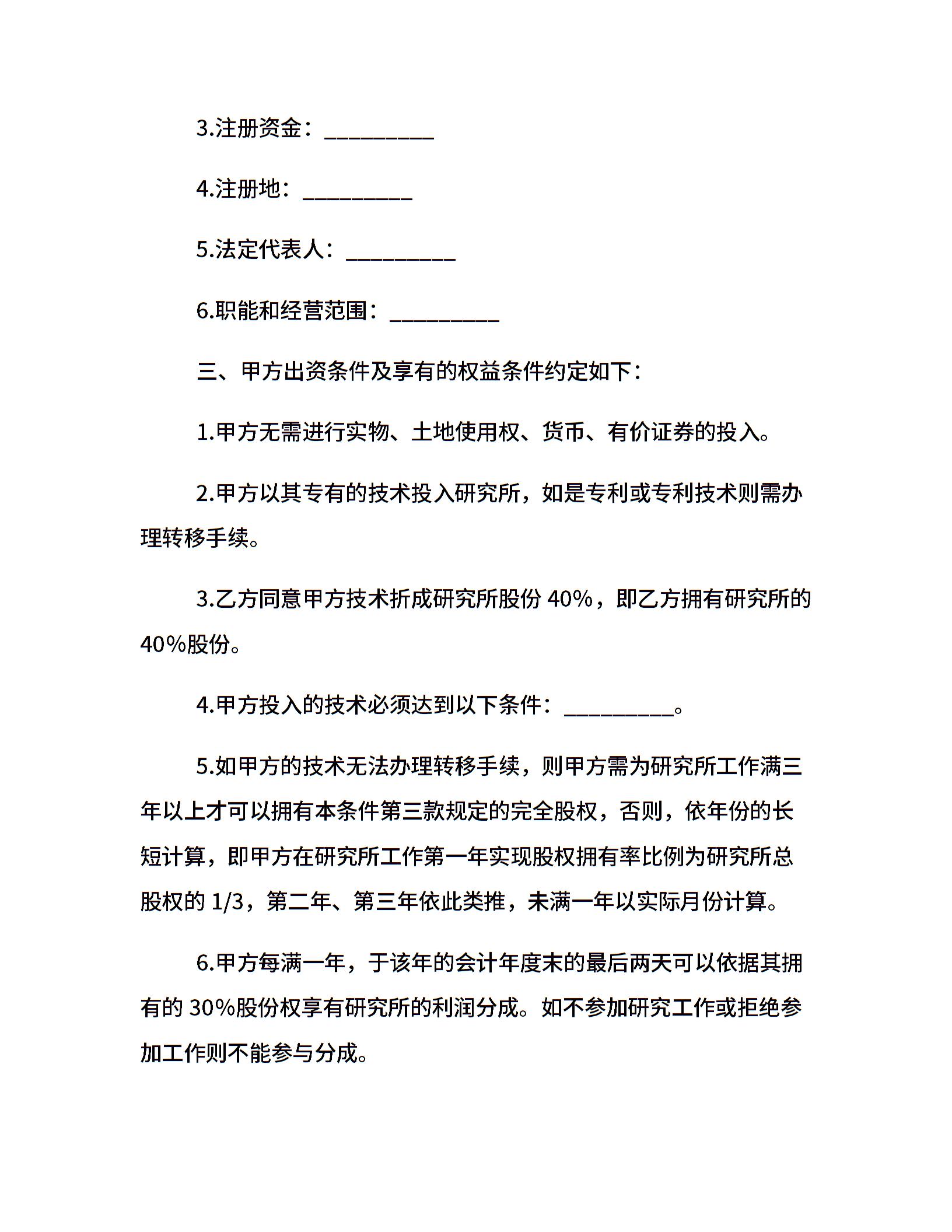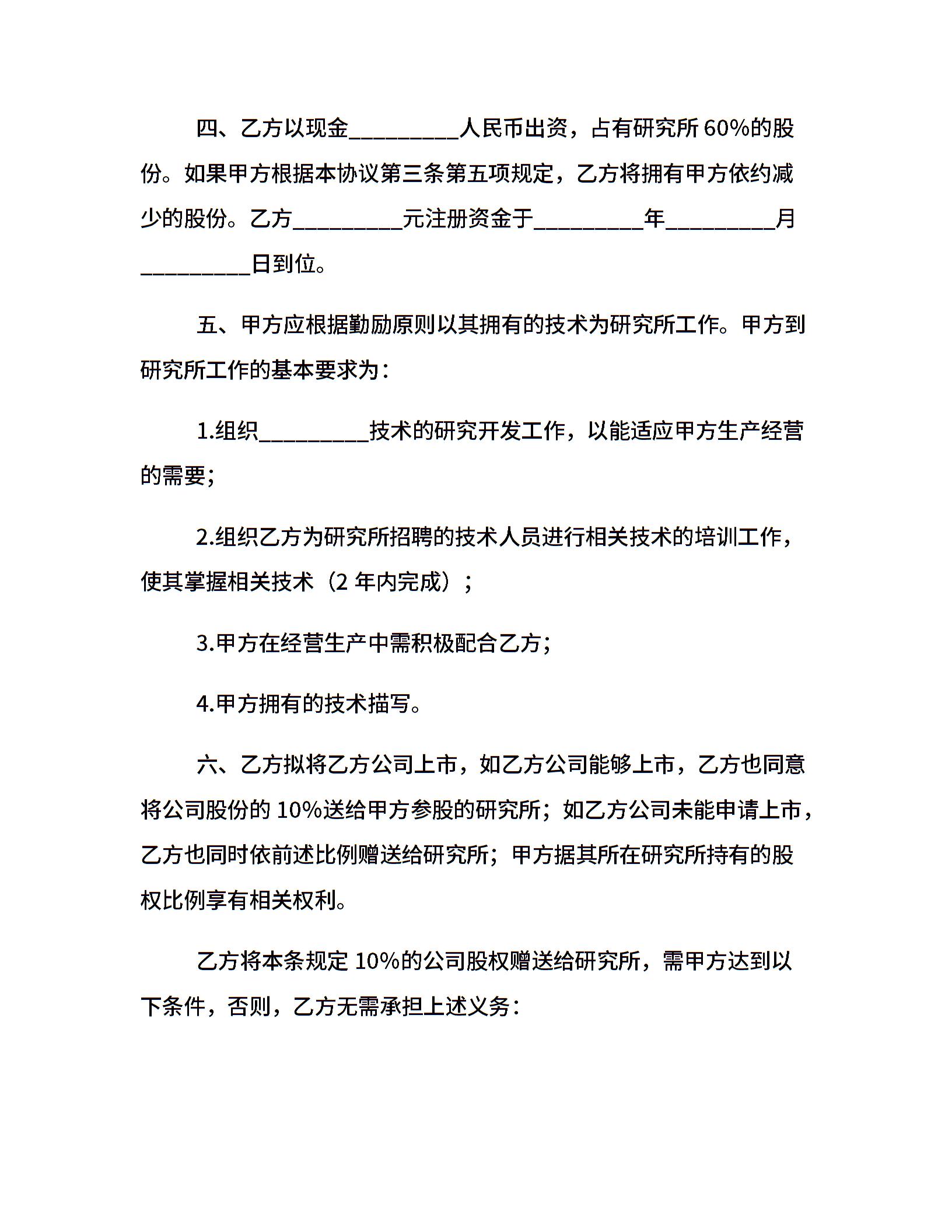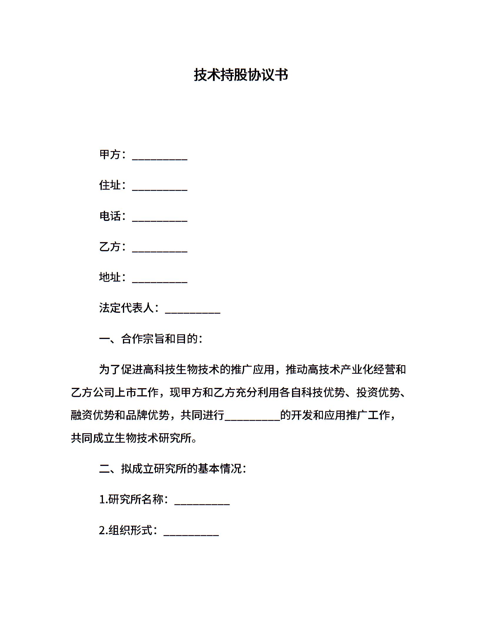 技术持股协议书