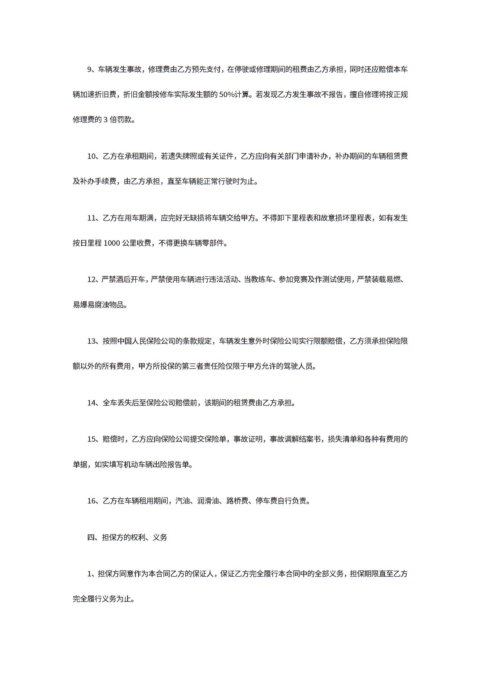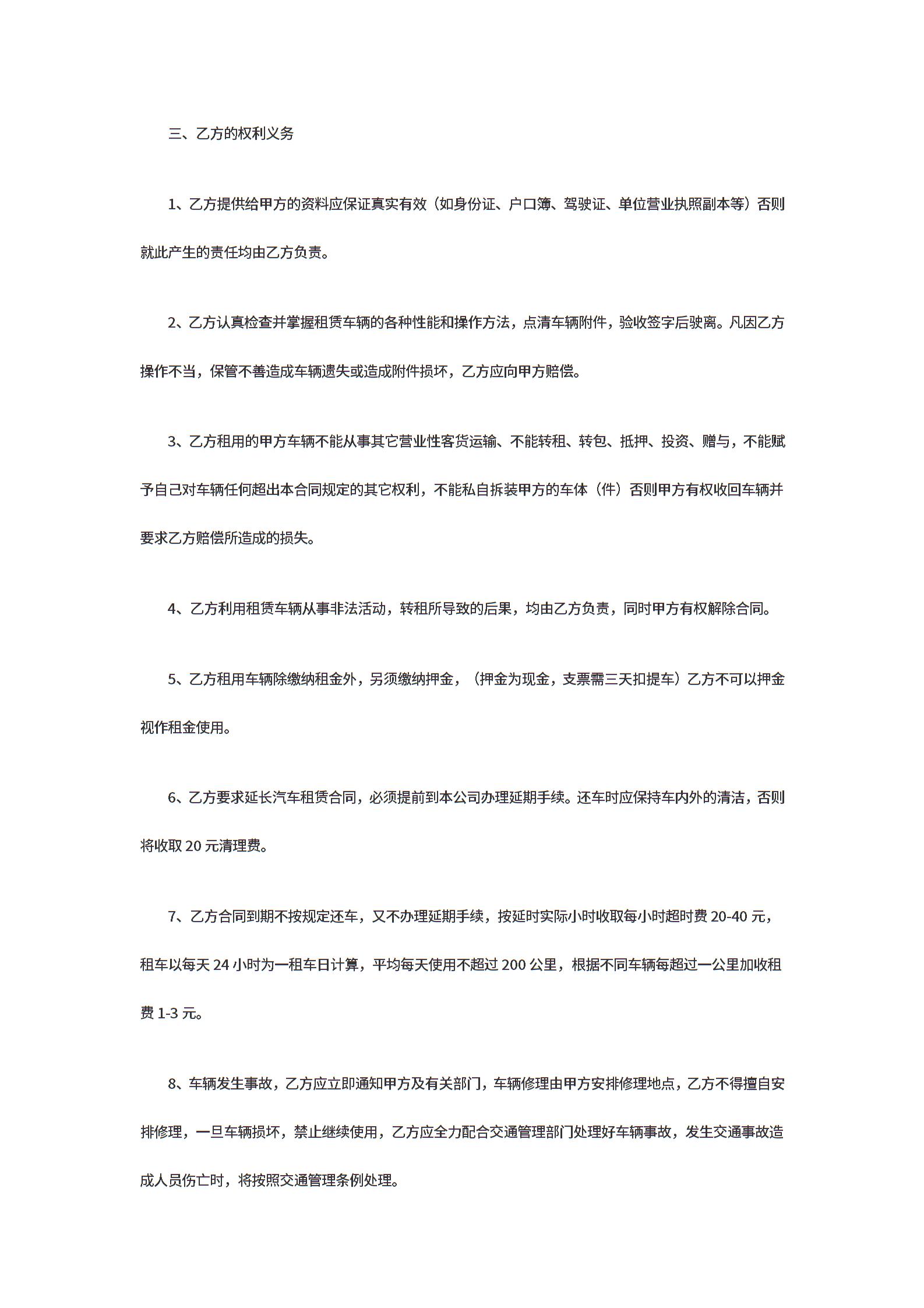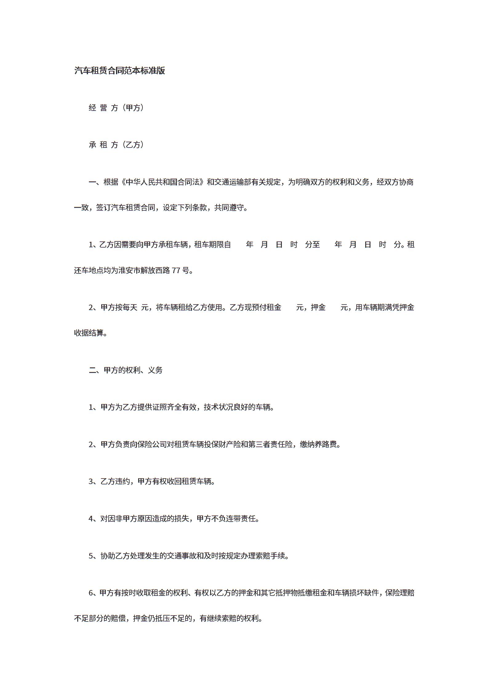 汽车租赁合同范本标准版