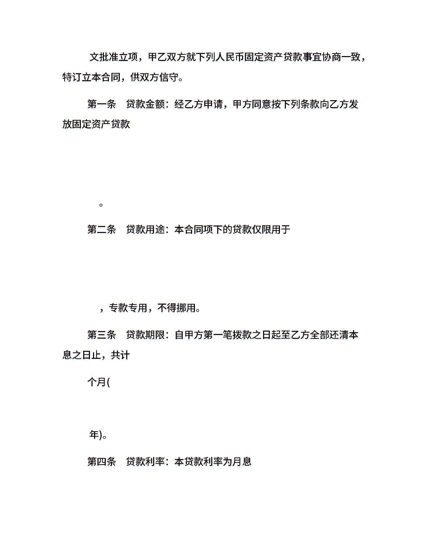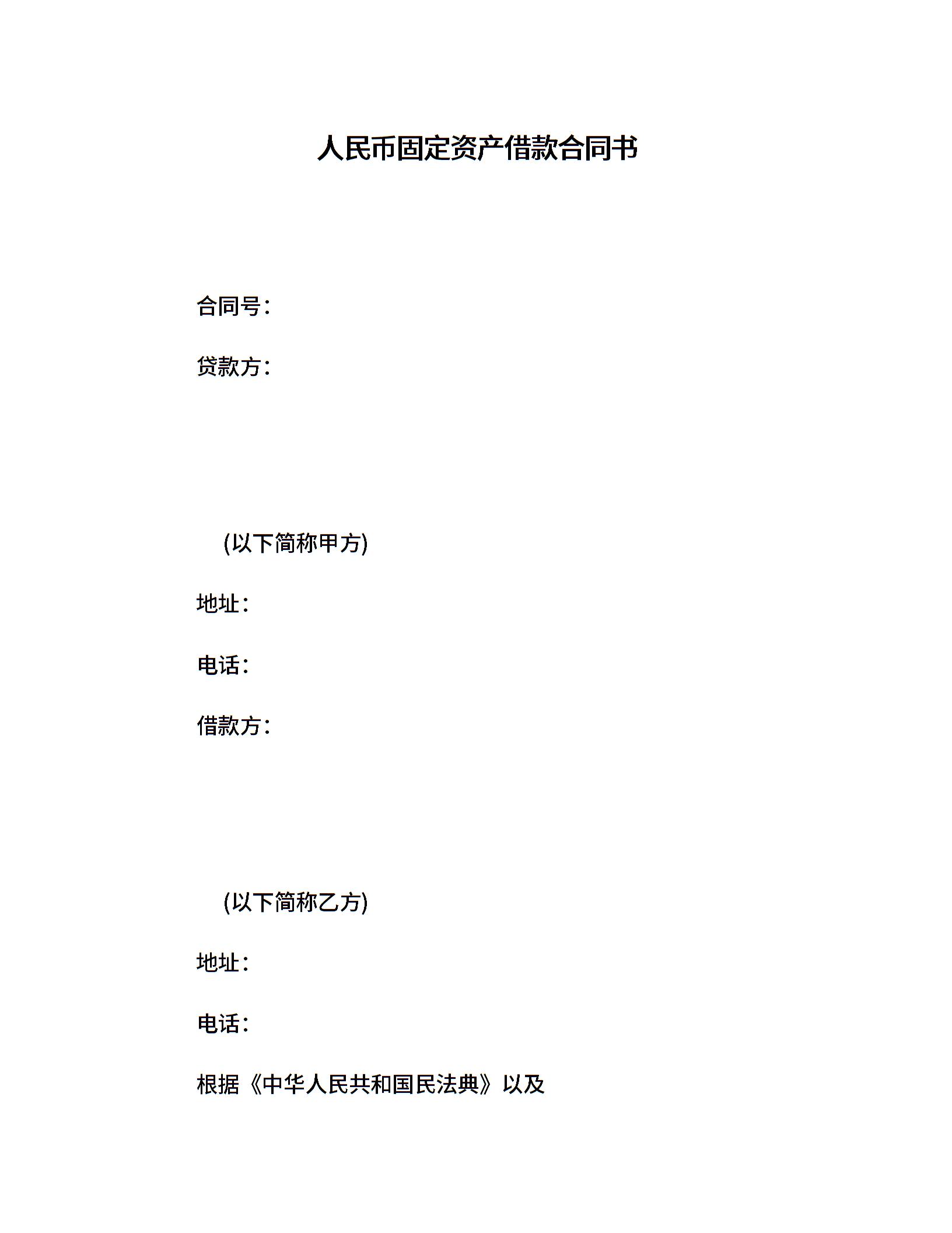 人民币固定资产借款合同书