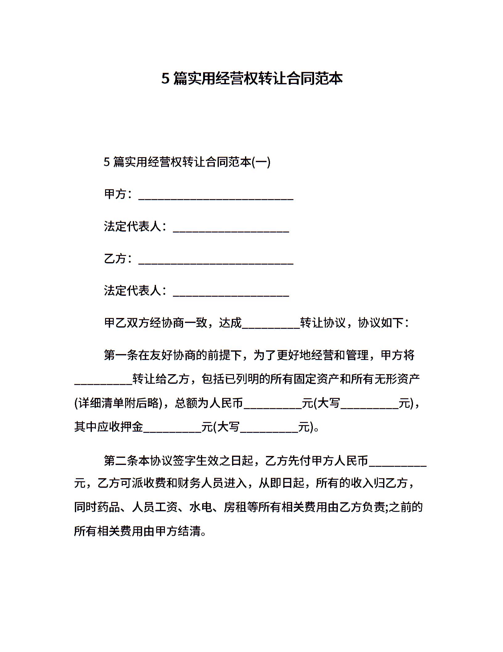 5篇实用经营权转让合同范本