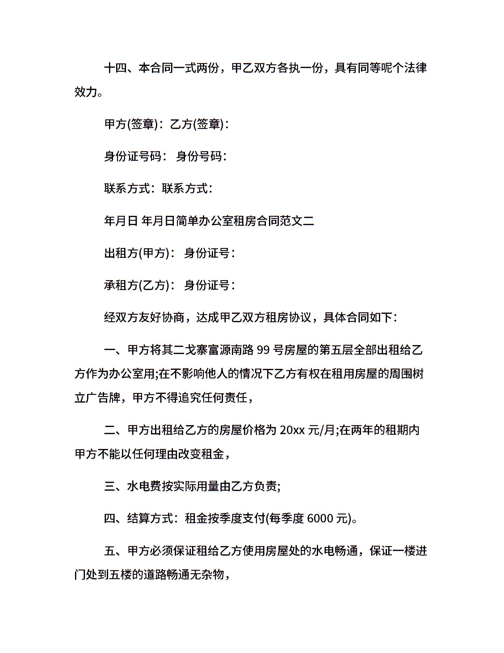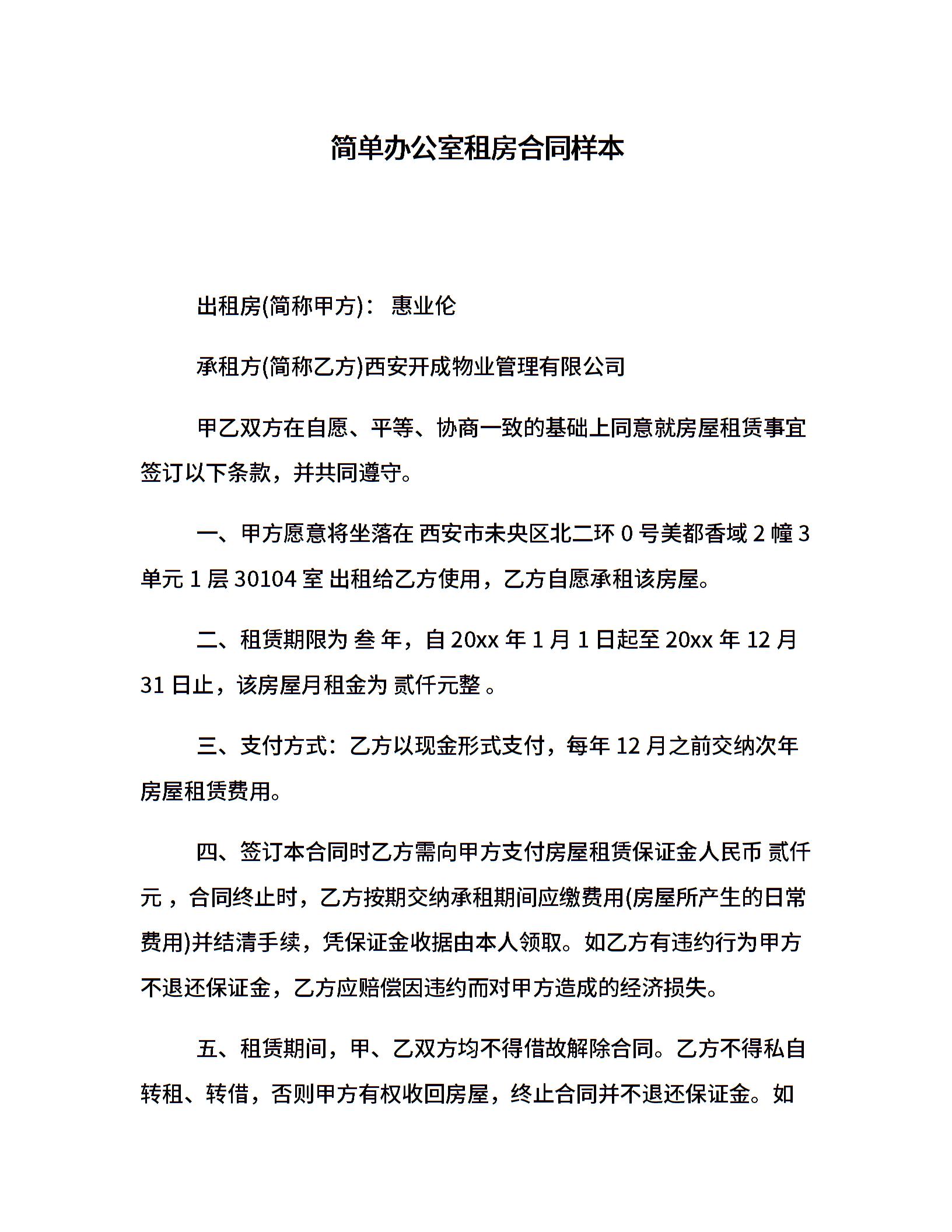 简单办公室租房合同样本