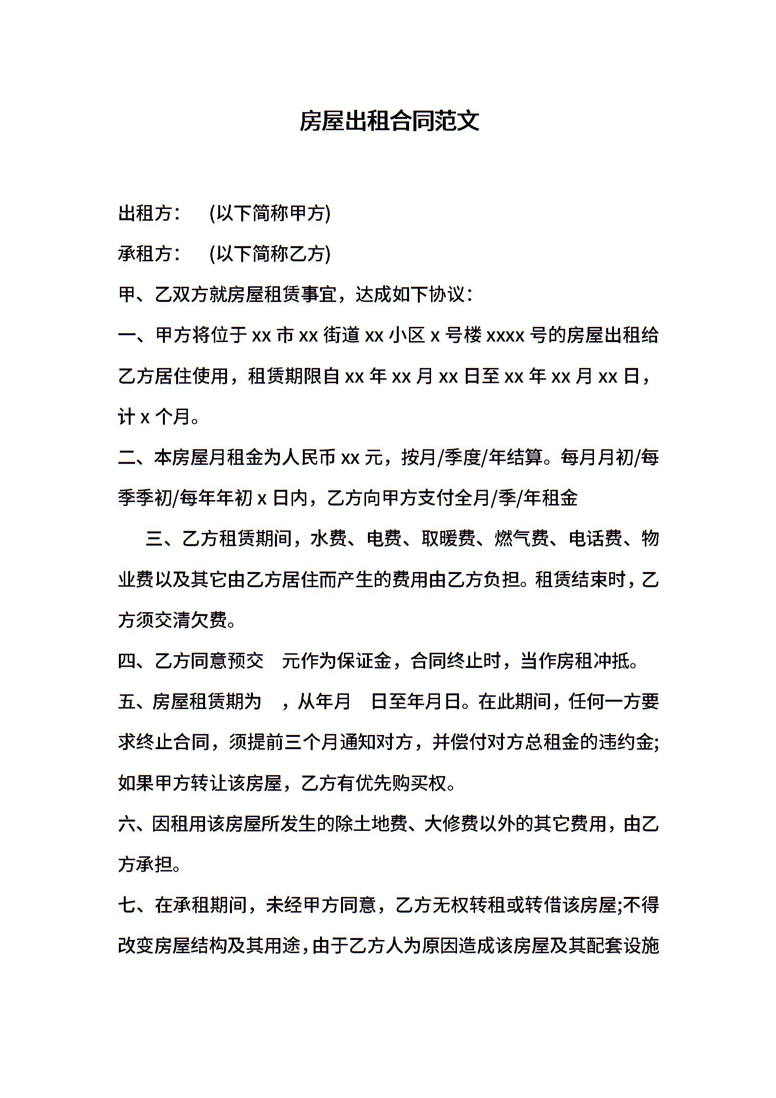房屋出租合同范文 (6)