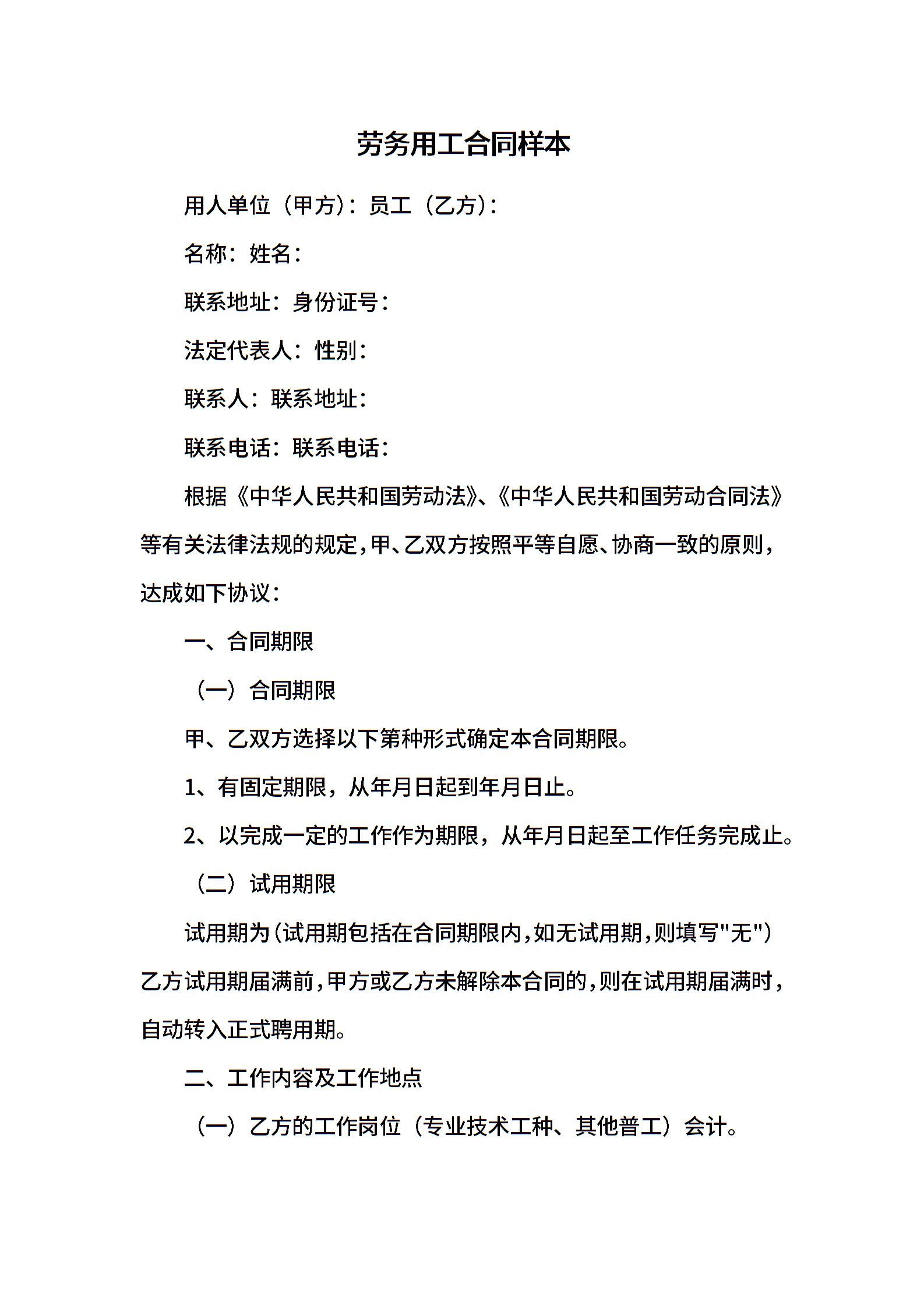当前位置:量子办公 > 合同模板 > 劳务合同 >