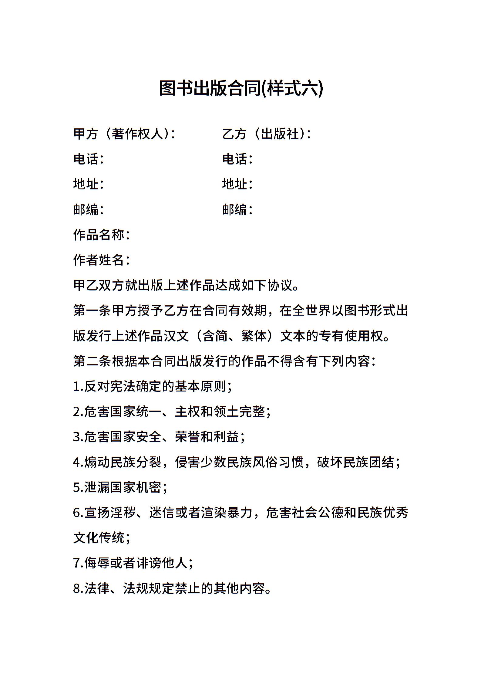 图书出版合同(样式六)