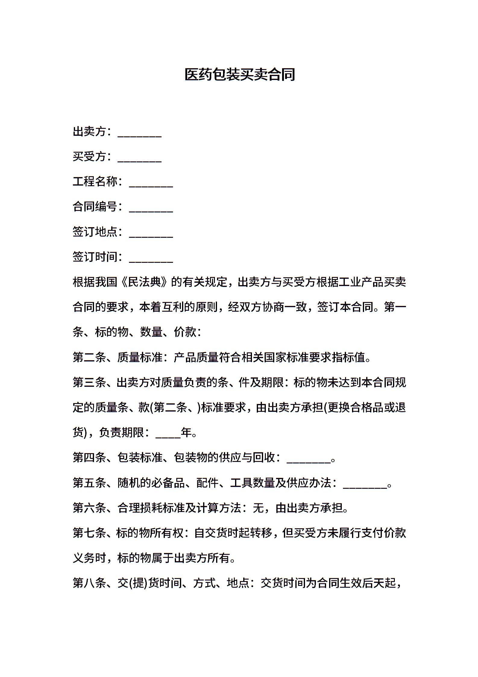 医药包装买卖合同