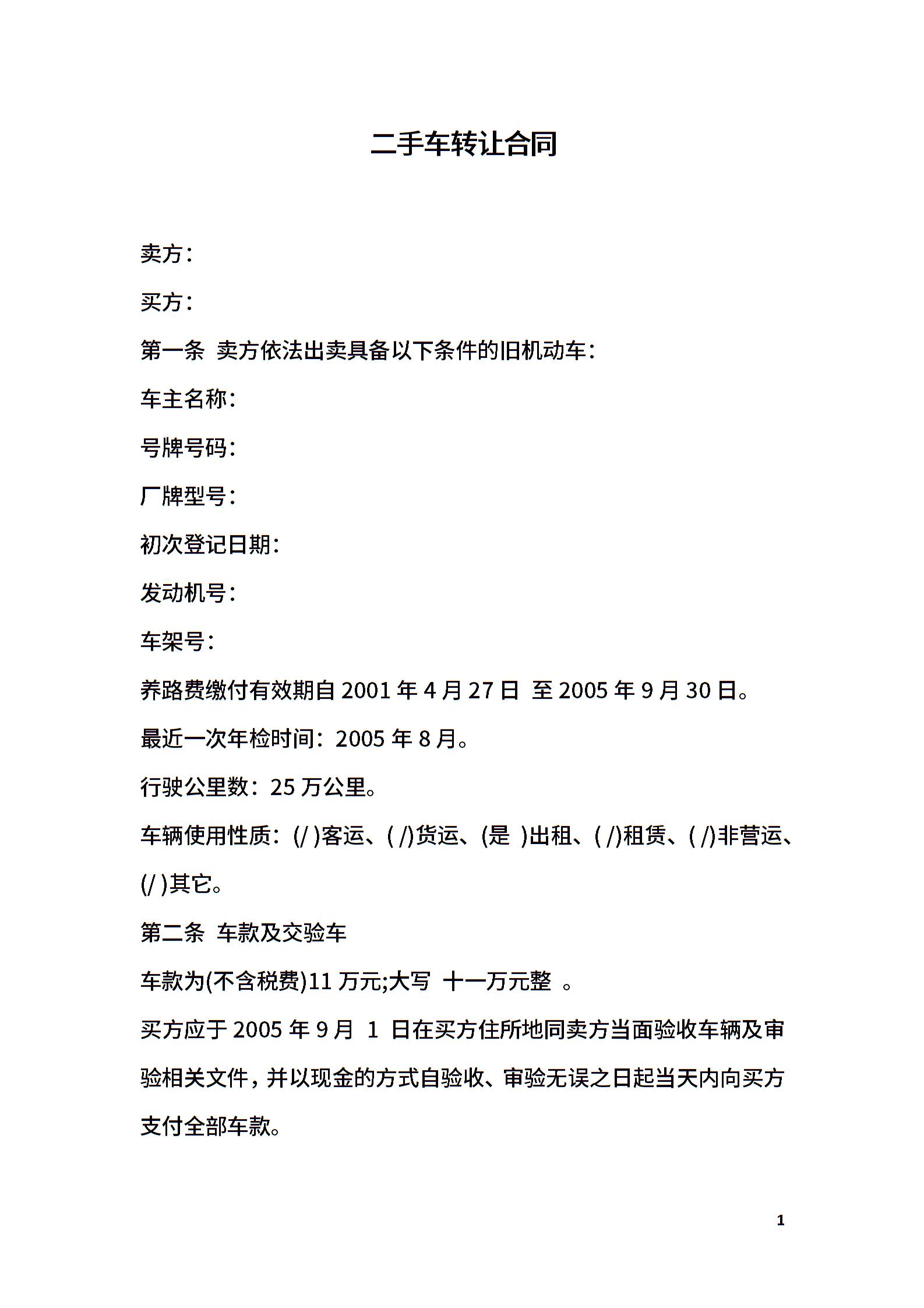 二手车转让合同