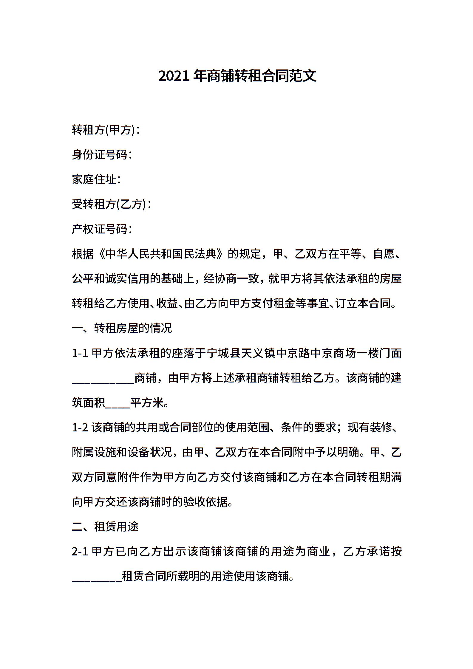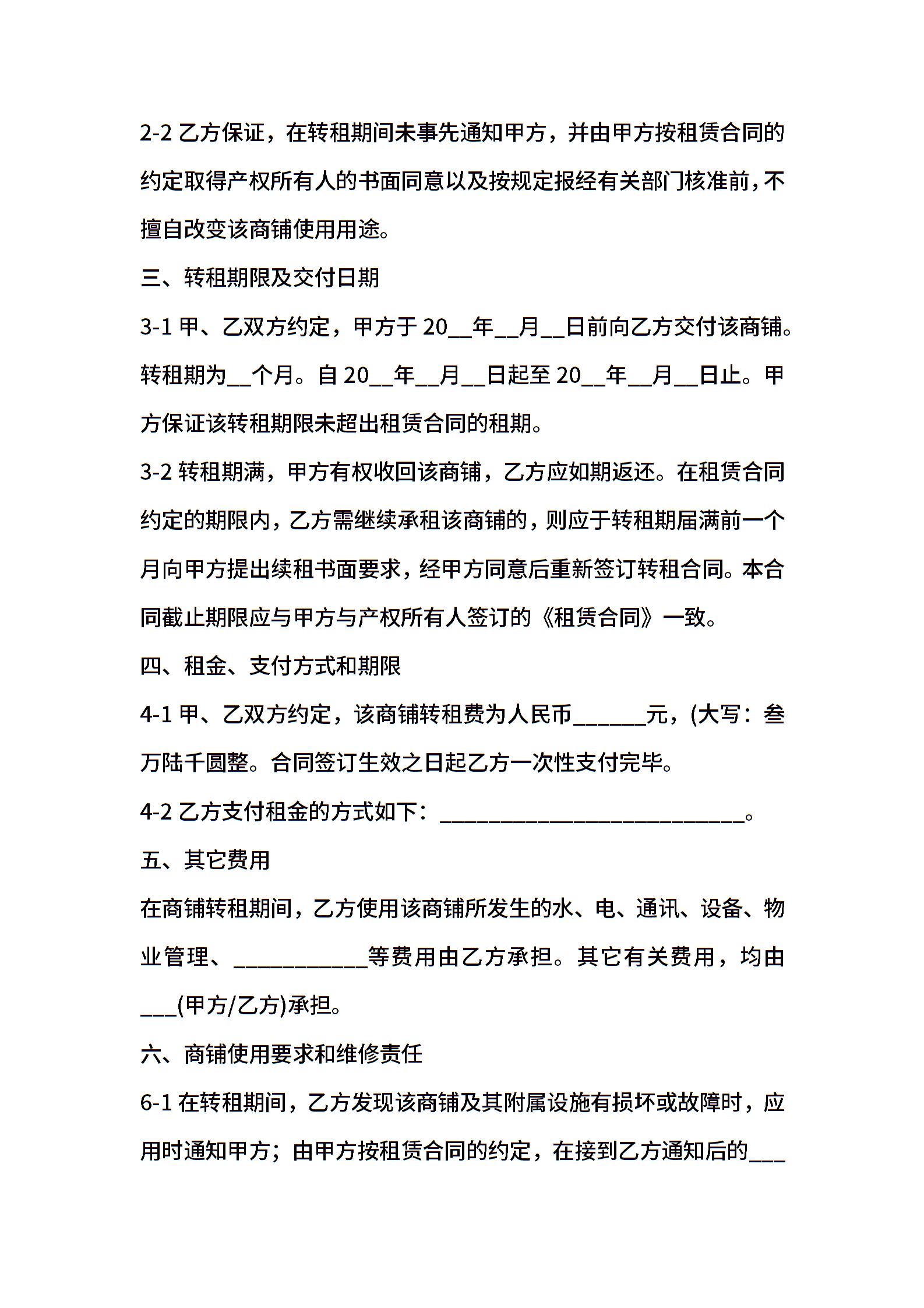 2021年商铺转租合同范文 (2)
