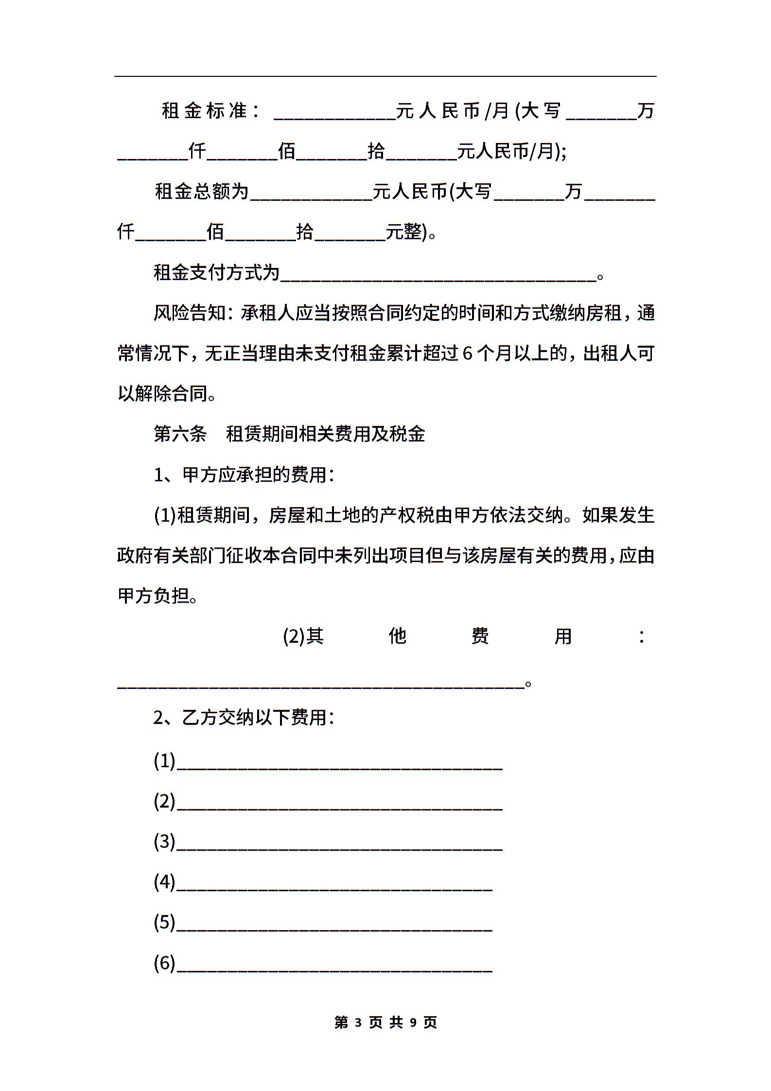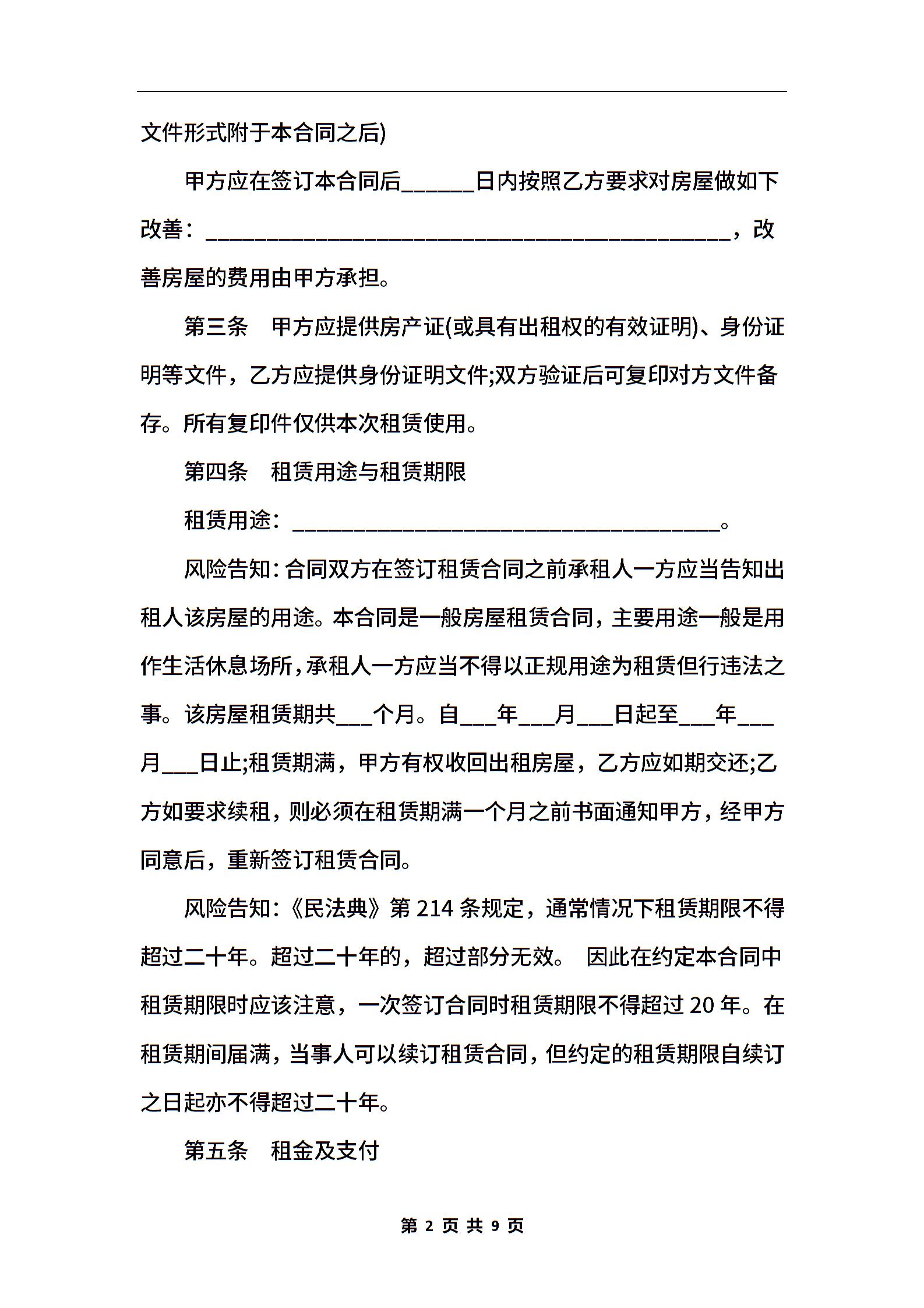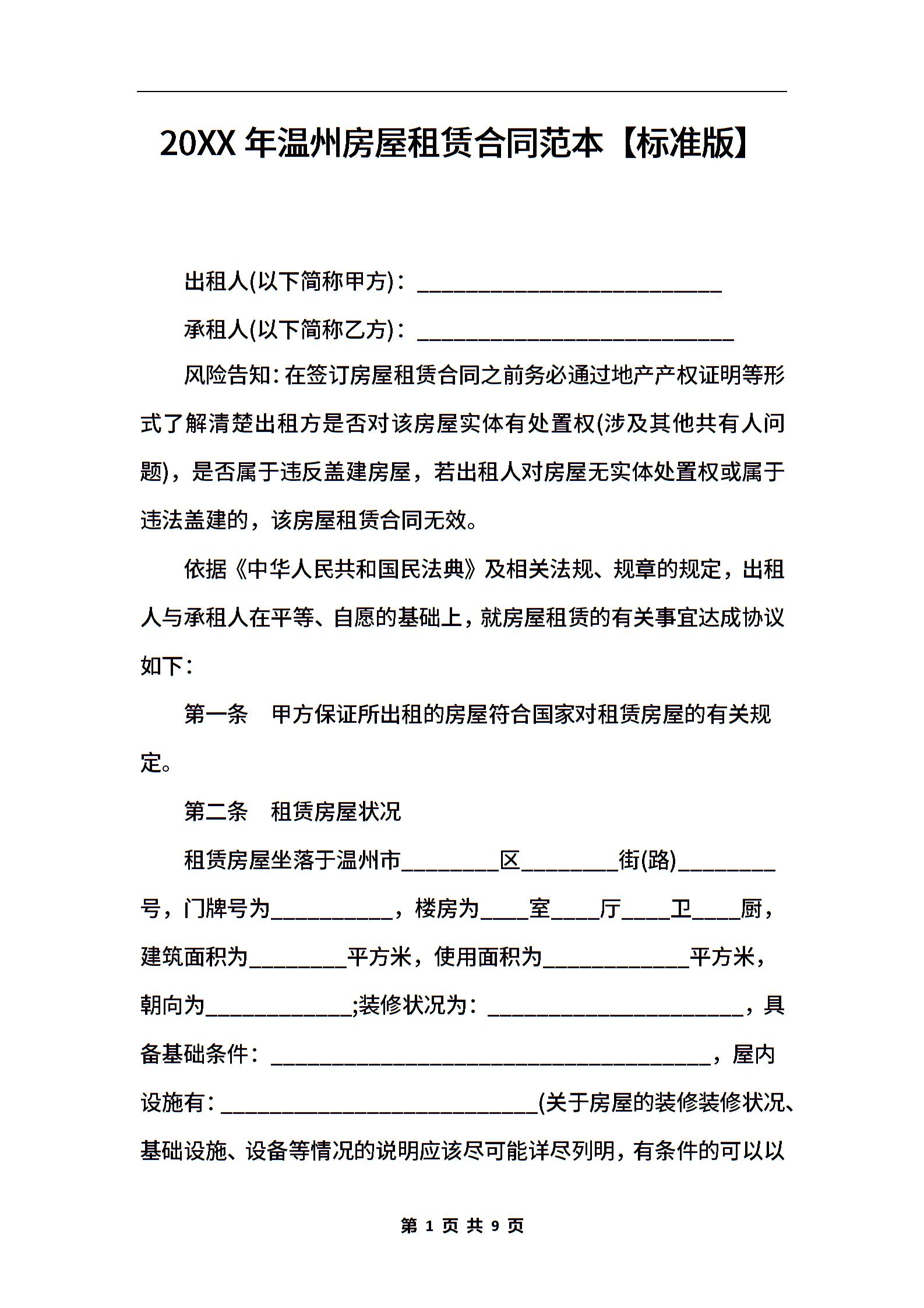 2021年温州房屋租赁合同范本【标准版】