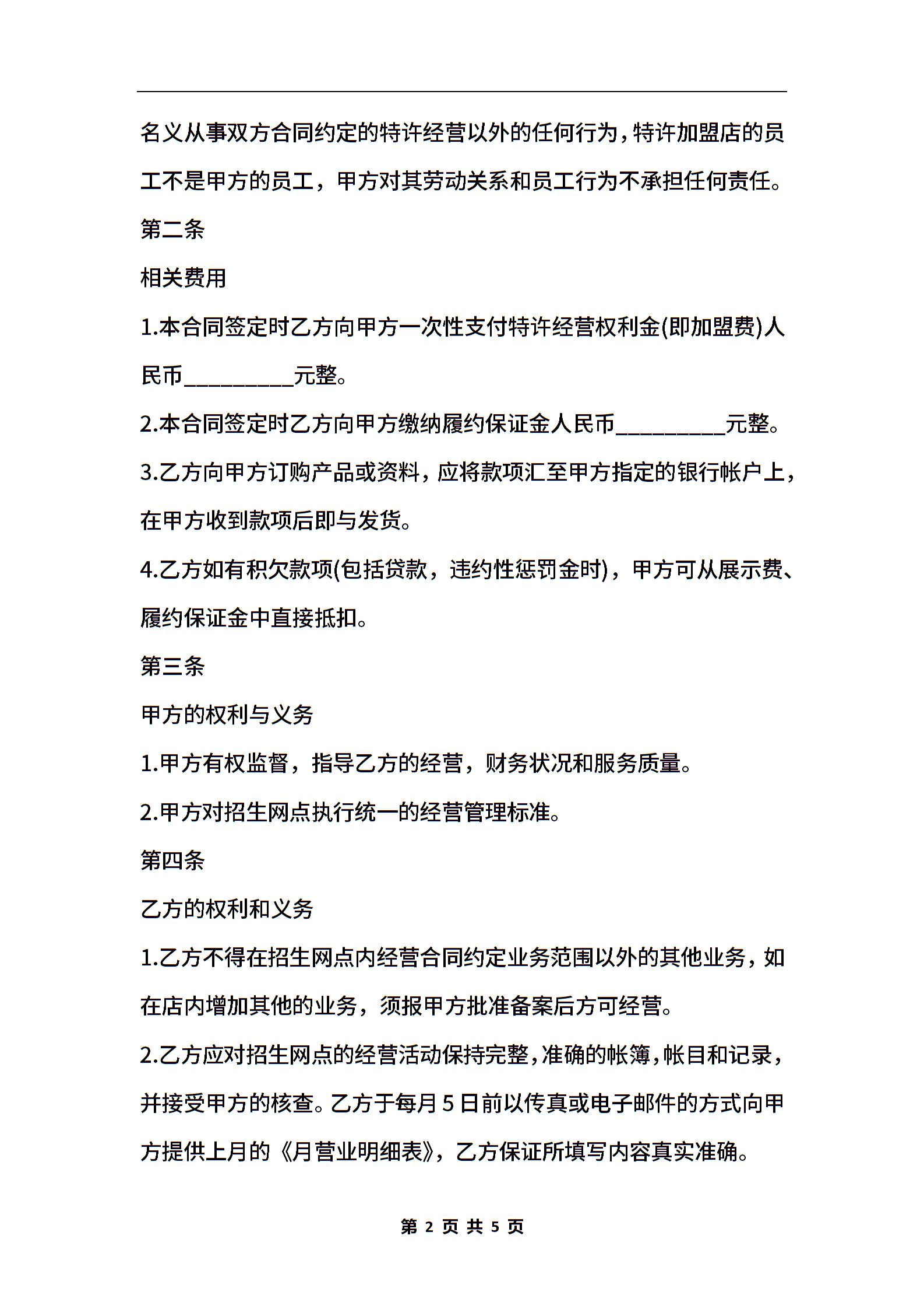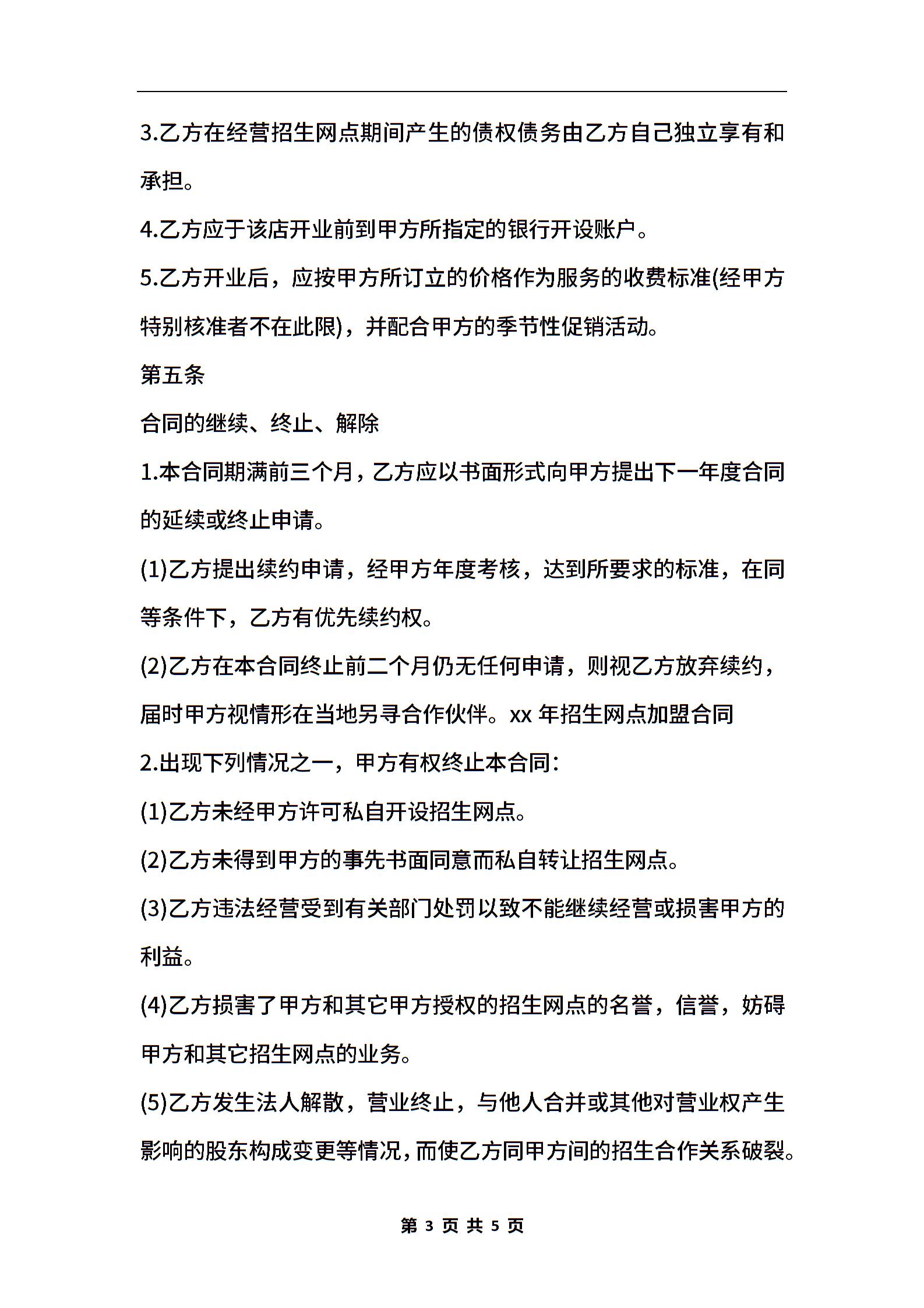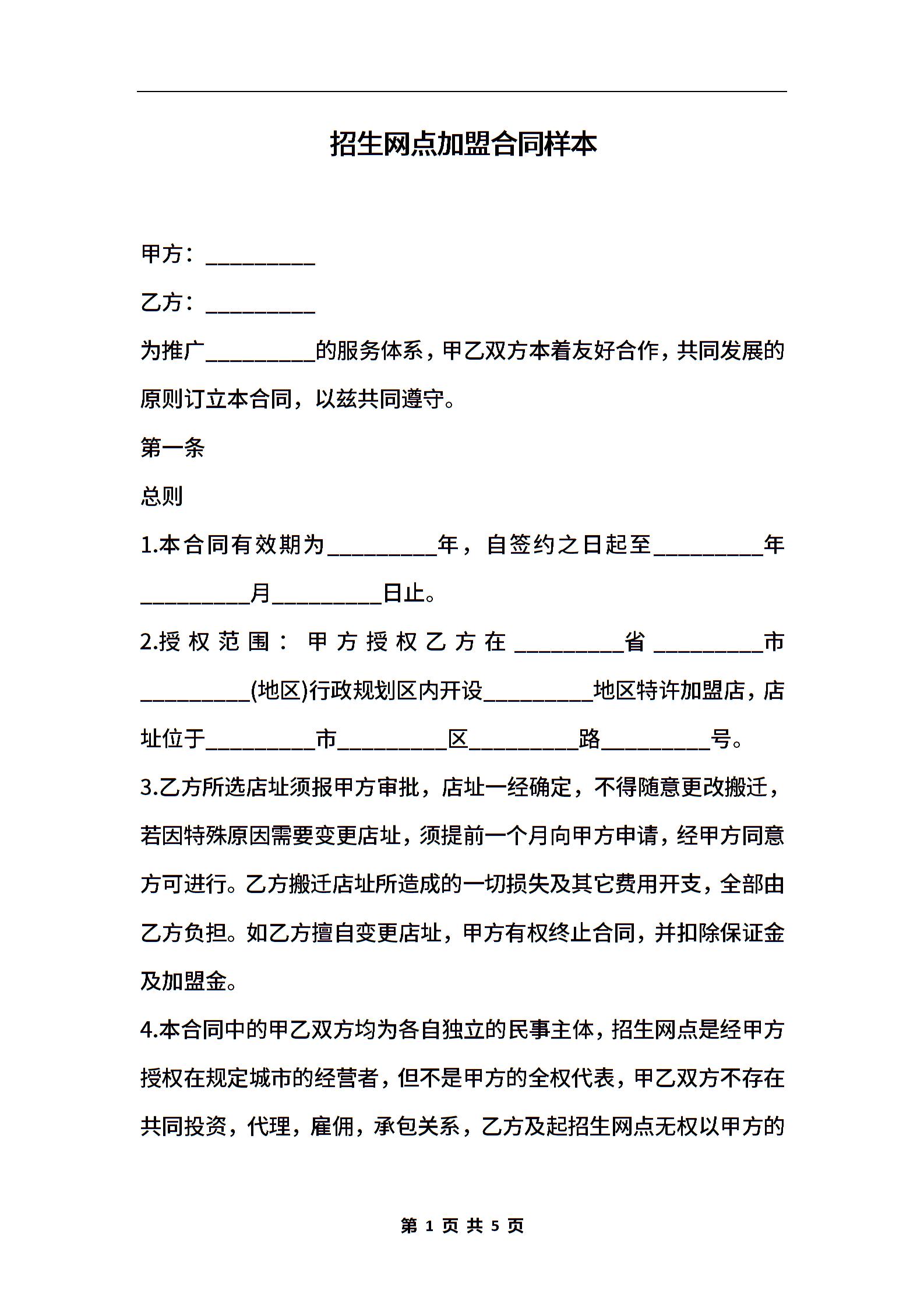 招生网点加盟合同样本