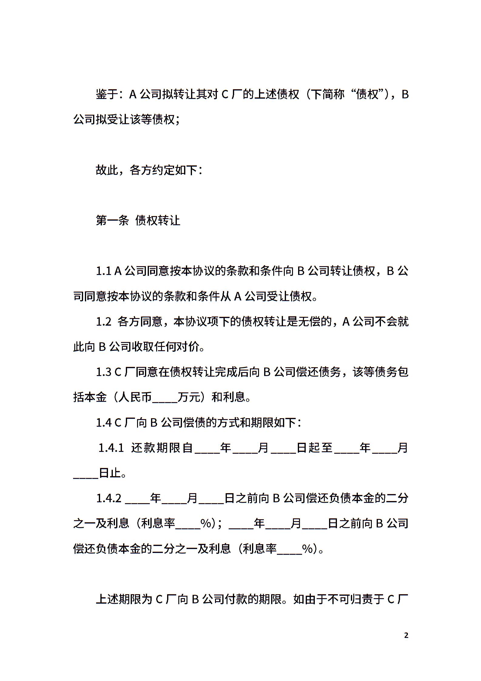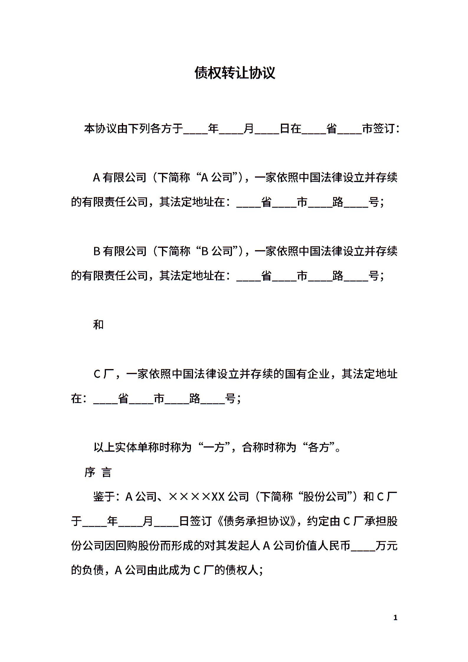 债权转让协议