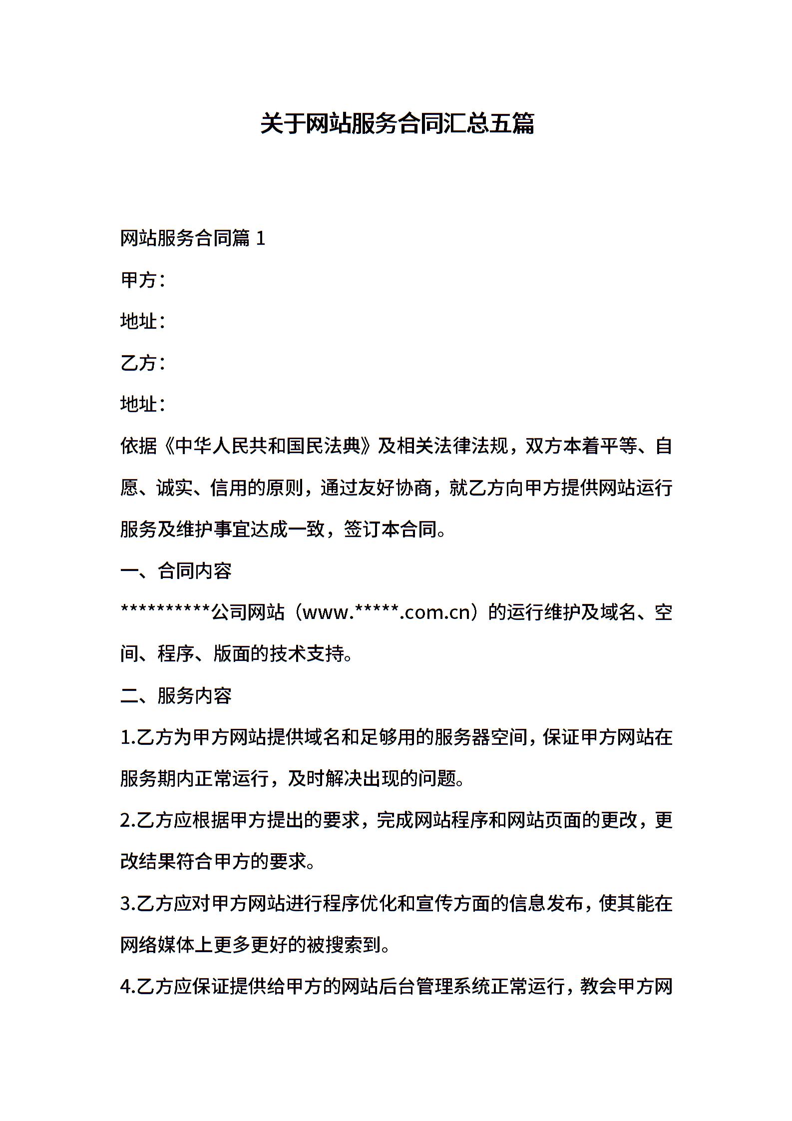 关于网站服务合同汇总五篇