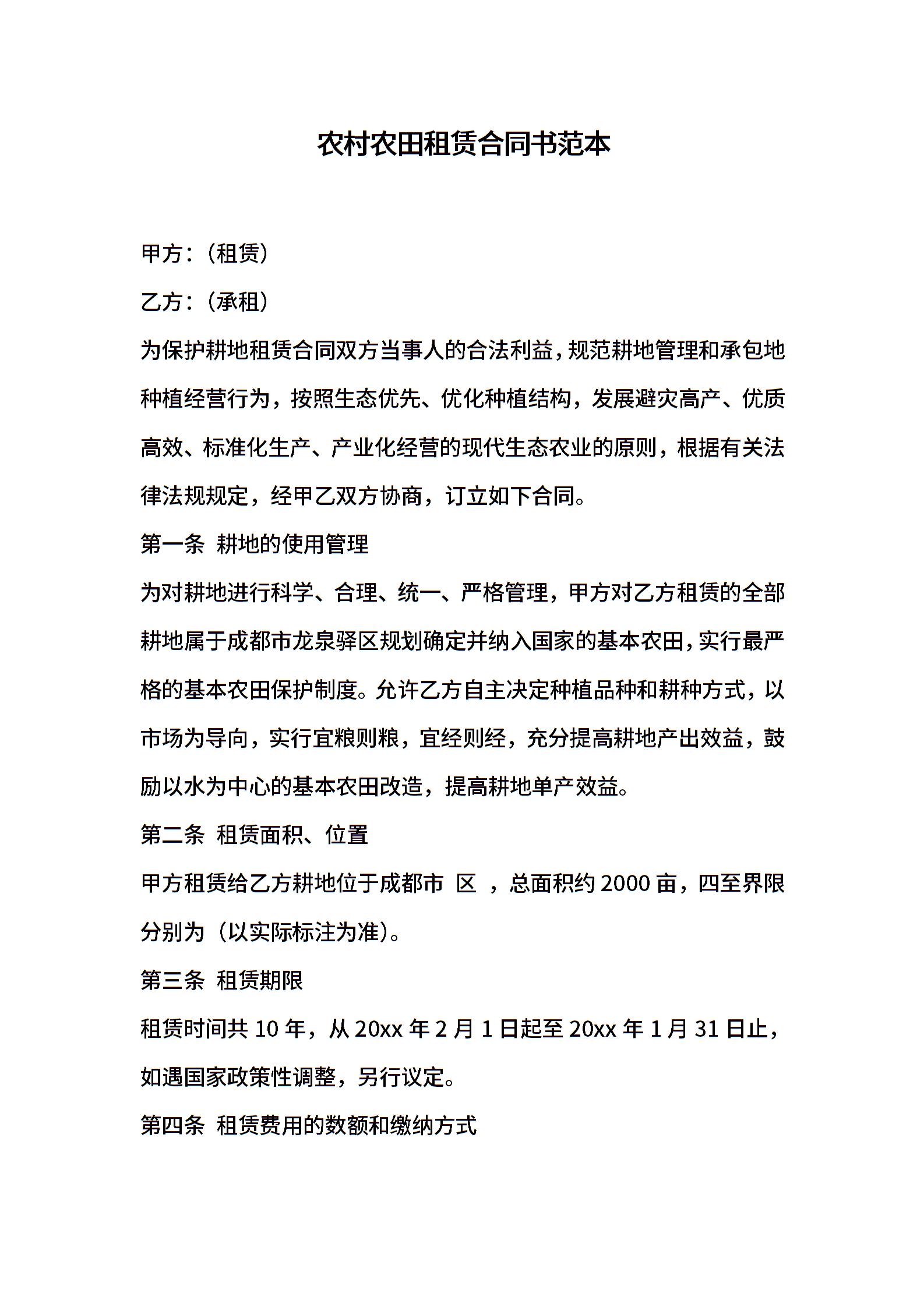 农村农田租赁合同书范本