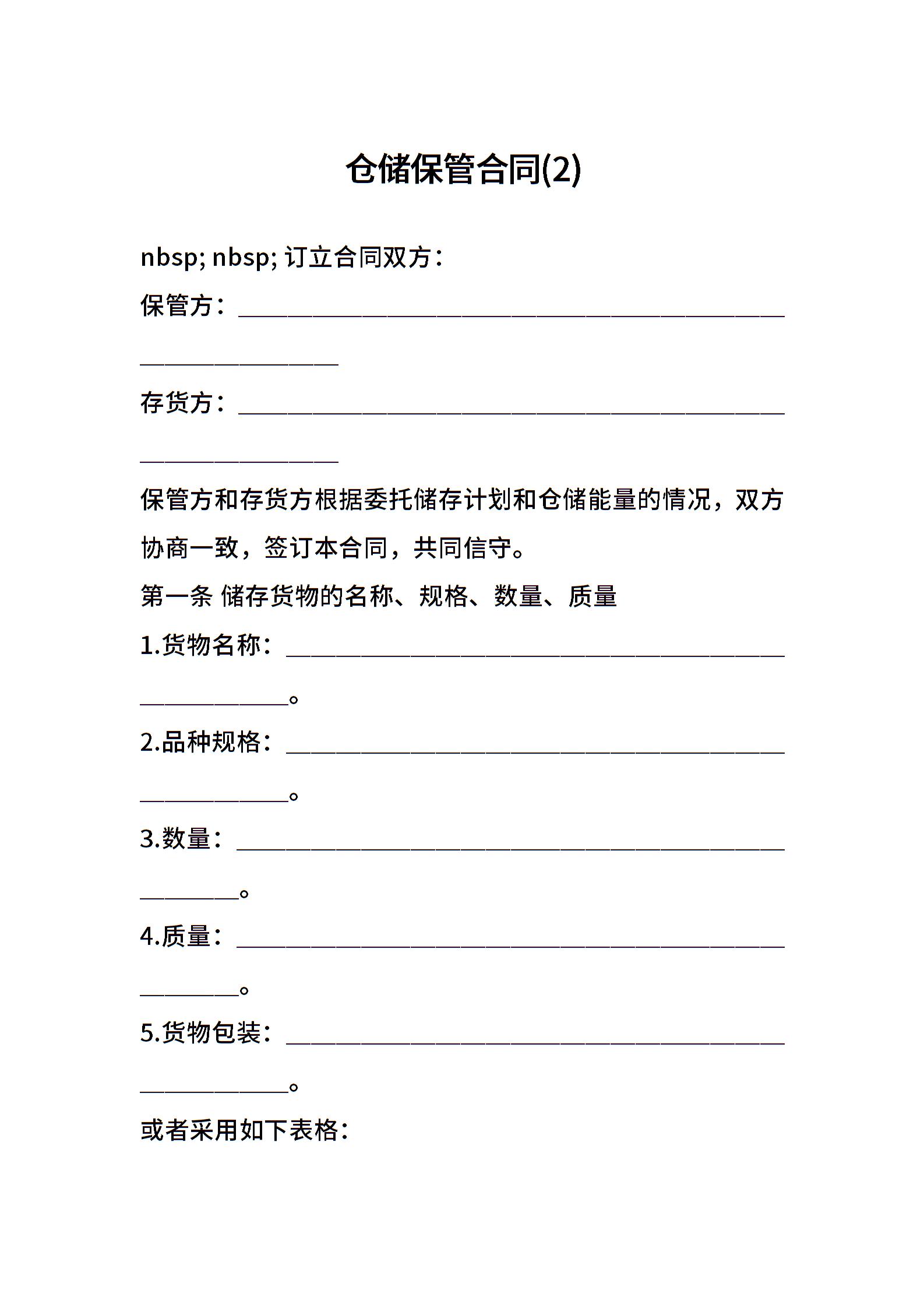 仓储保管合同(2)