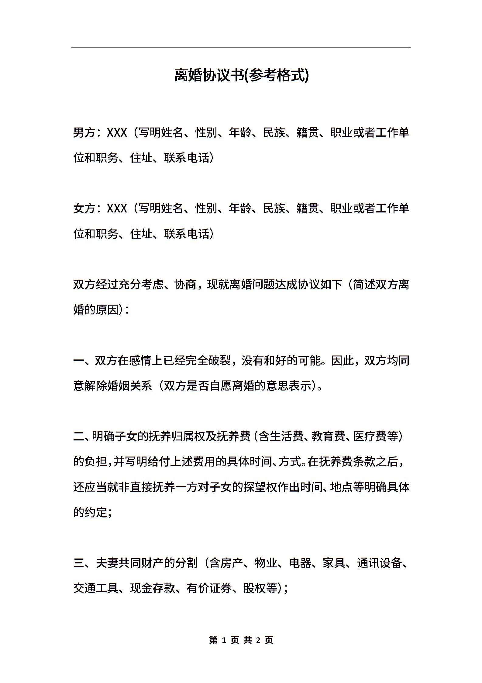当前位置:量子办公 > 合同模板 > 离婚协议 >