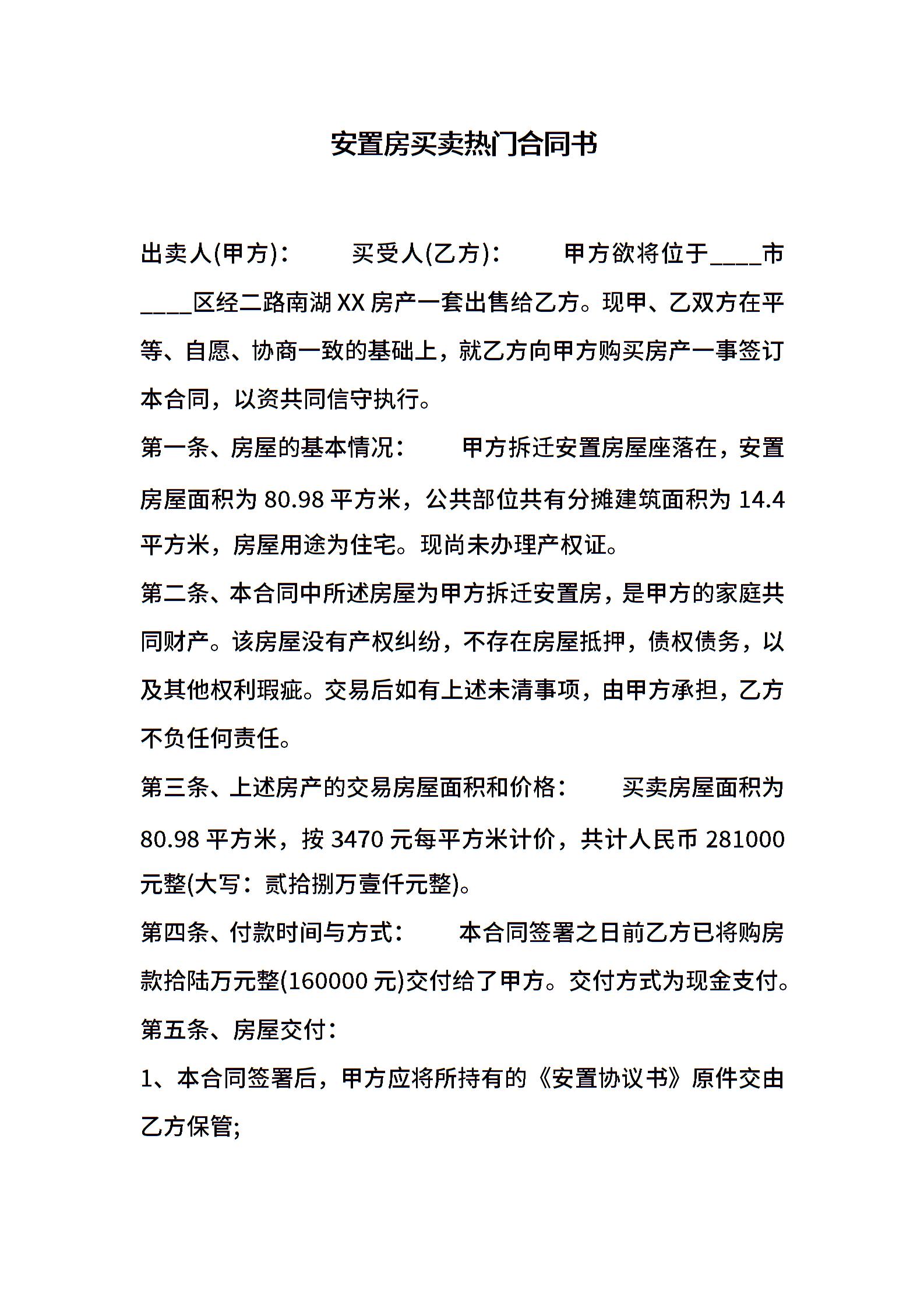 安置房买卖热门合同书