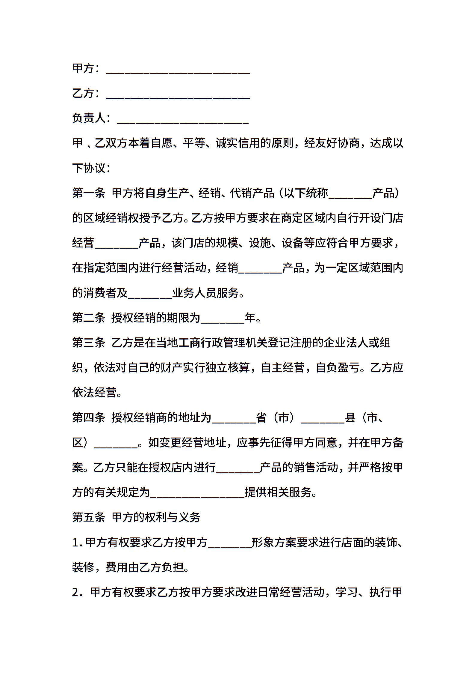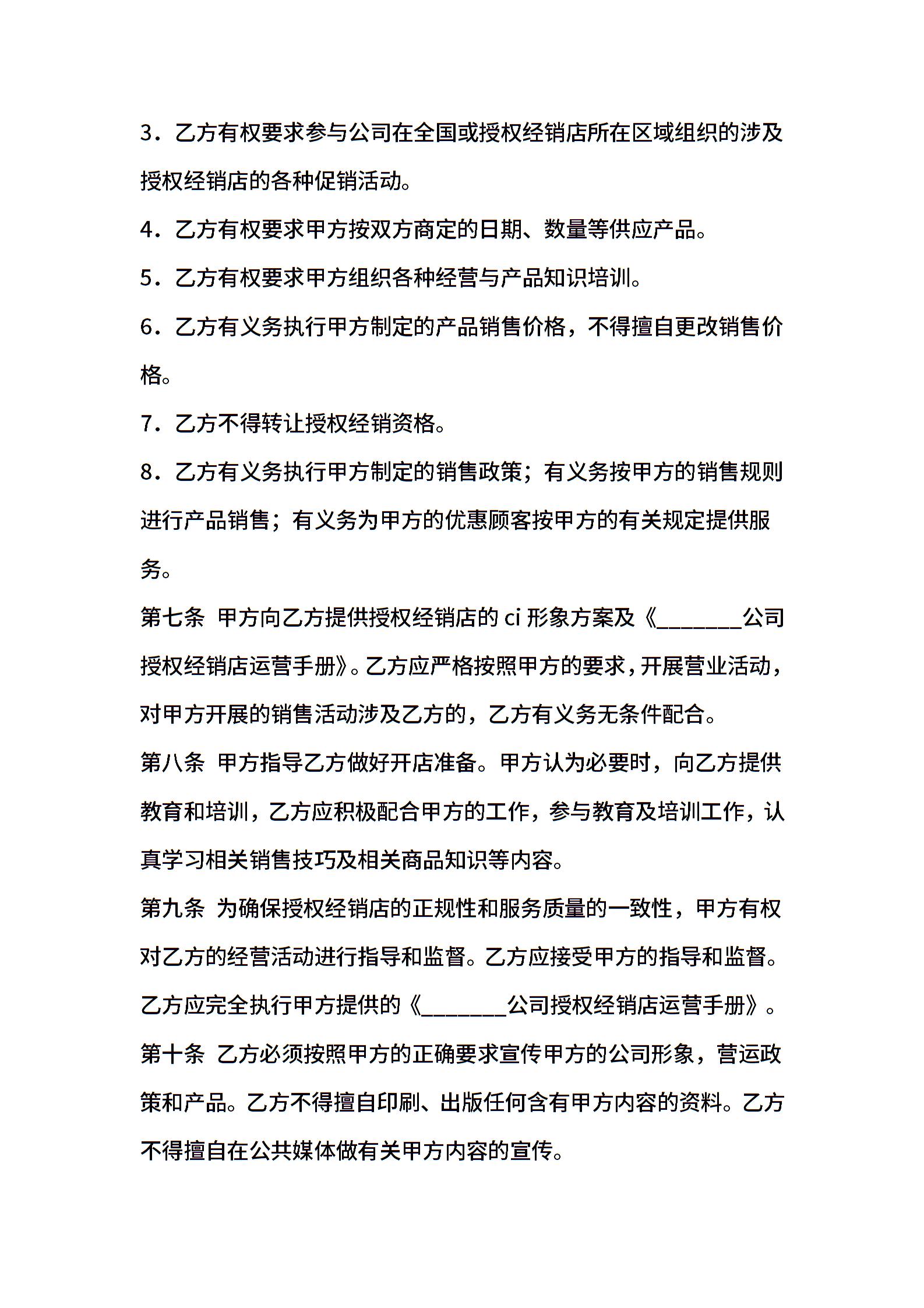 产品授权经销合同