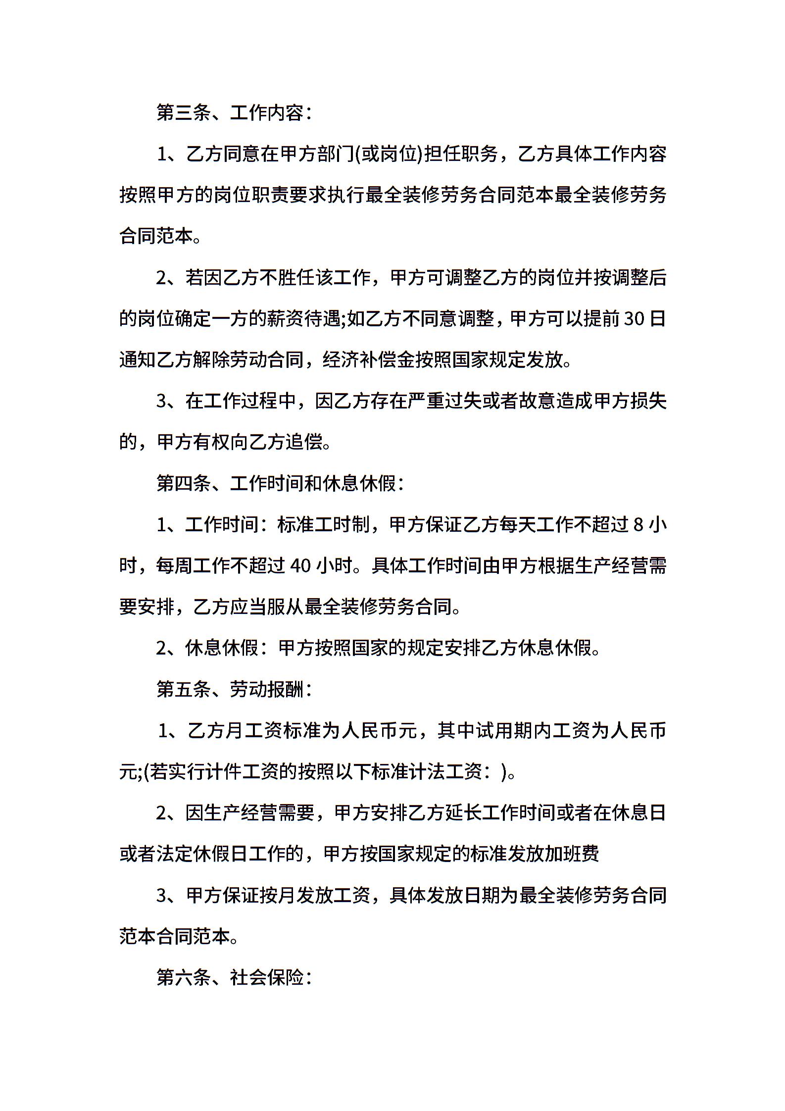 装修公司劳务雇佣合同书范本