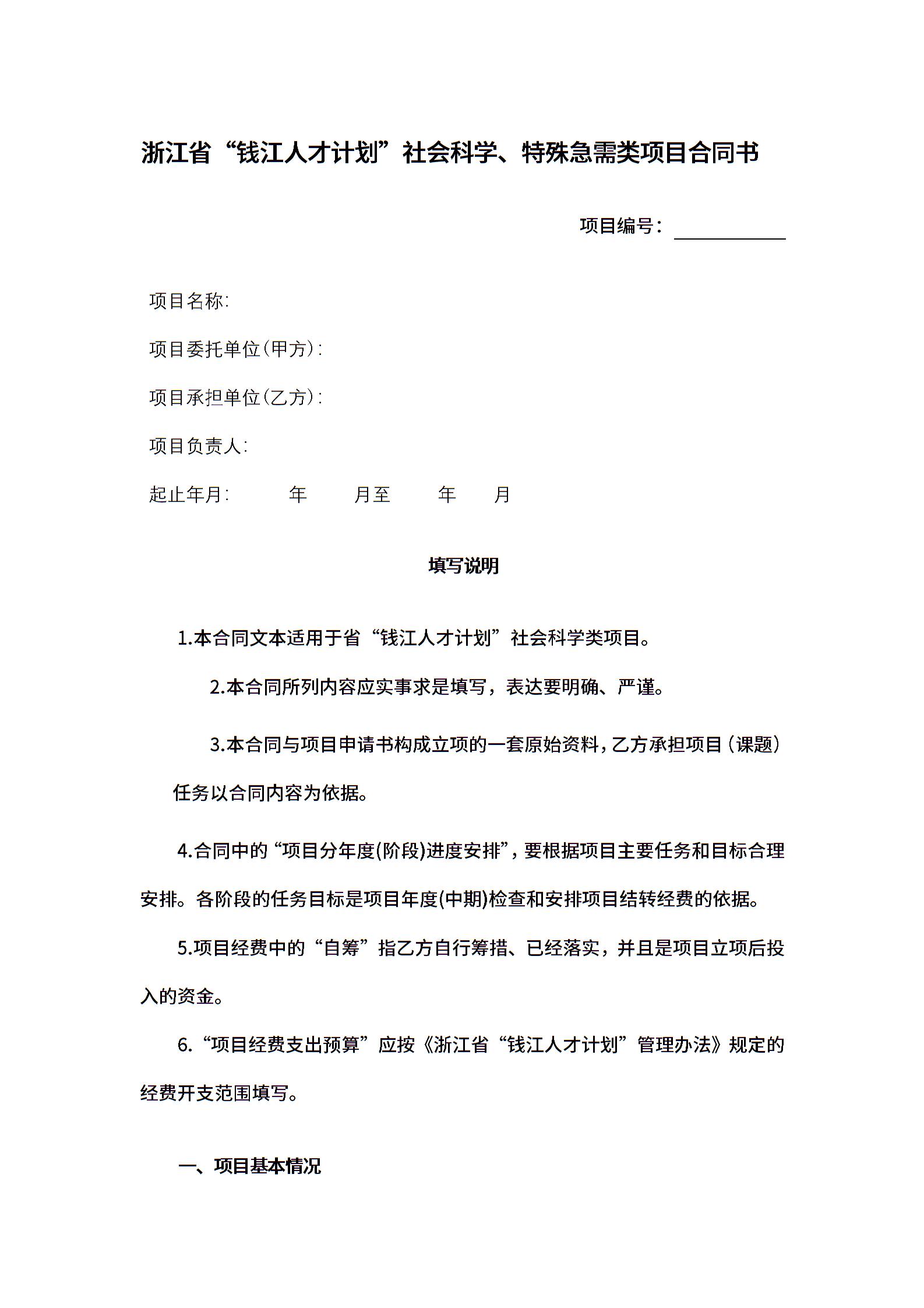 浙江省“钱江人才计划”社会科学、特殊急需类项目合同书.docx