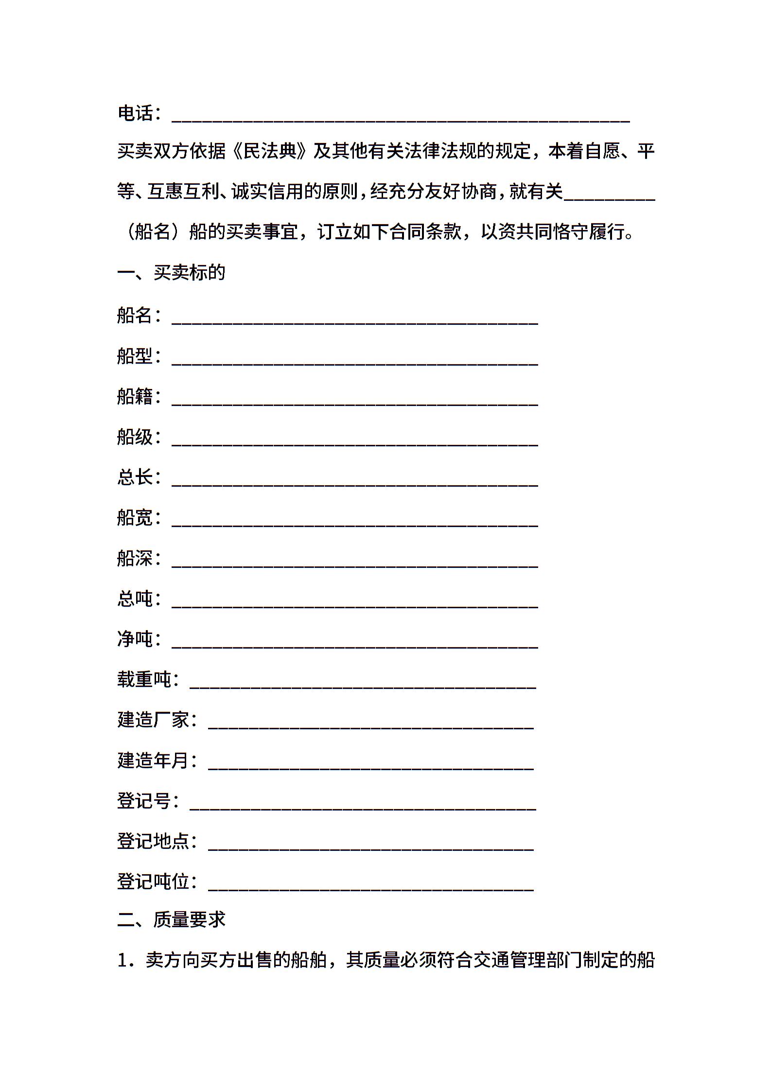 船舶买卖合同