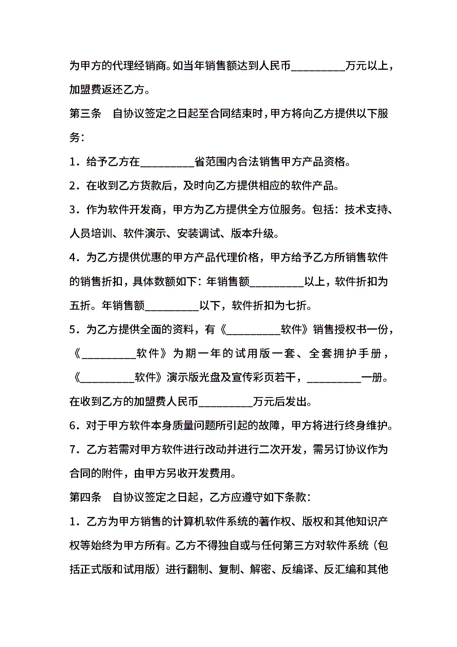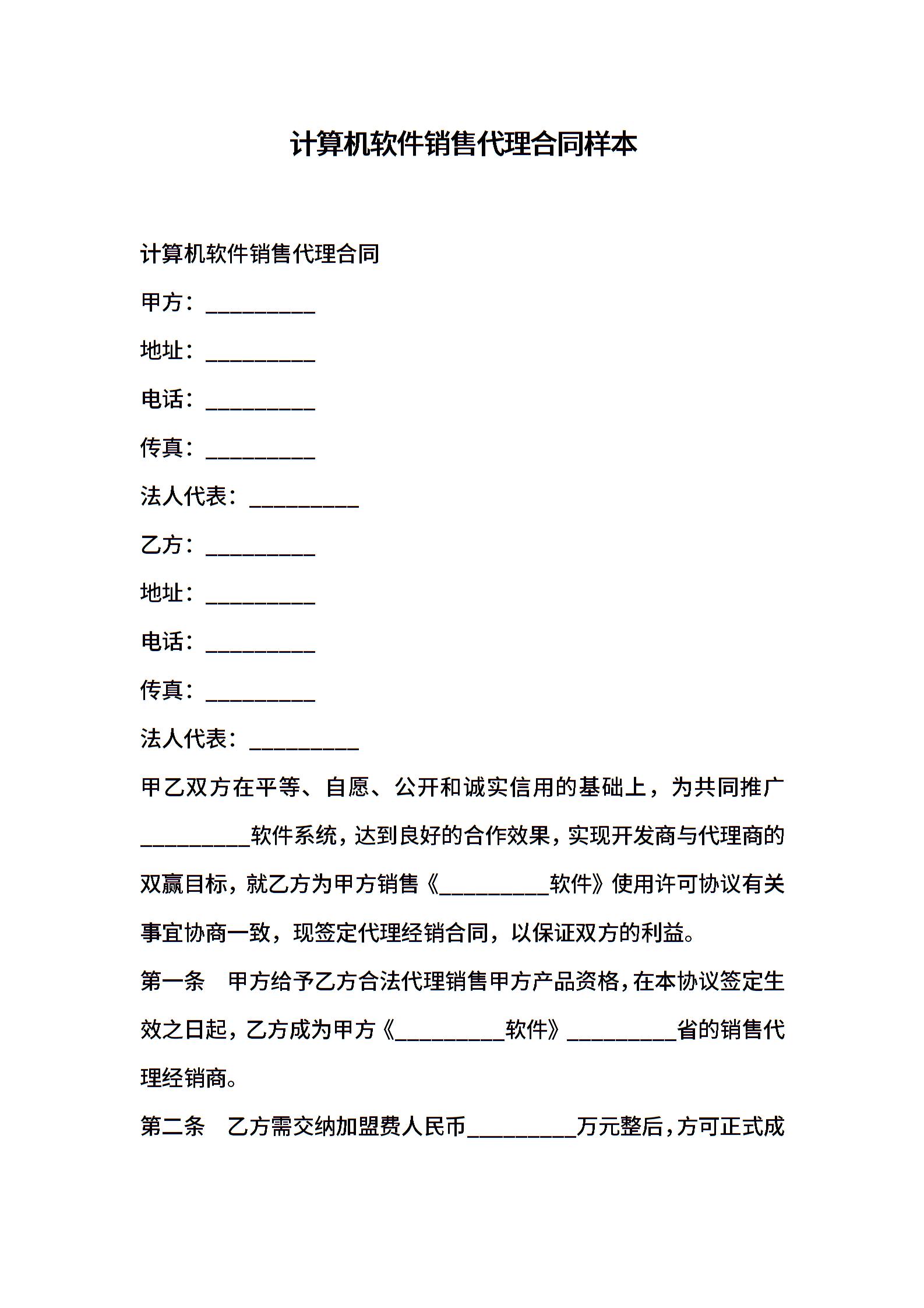 计算机软件销售代理合同样本