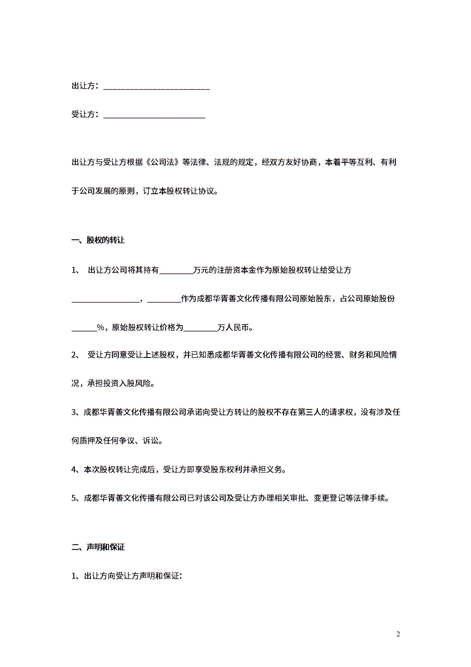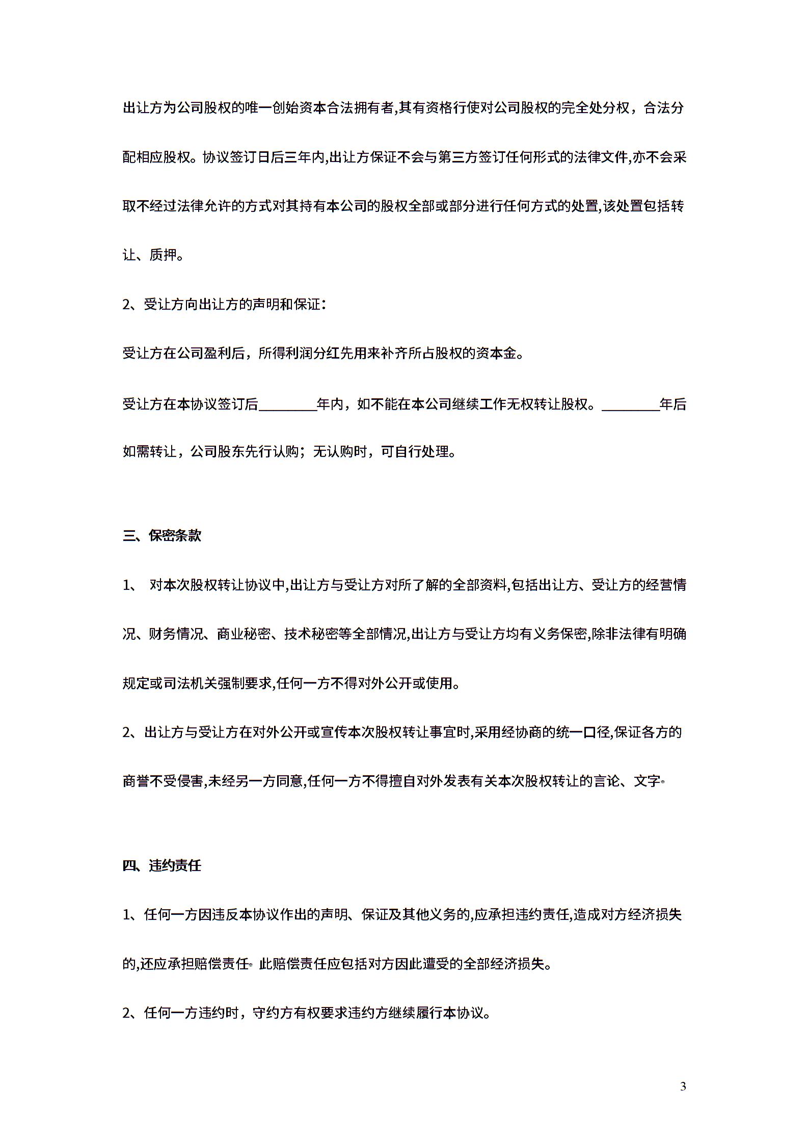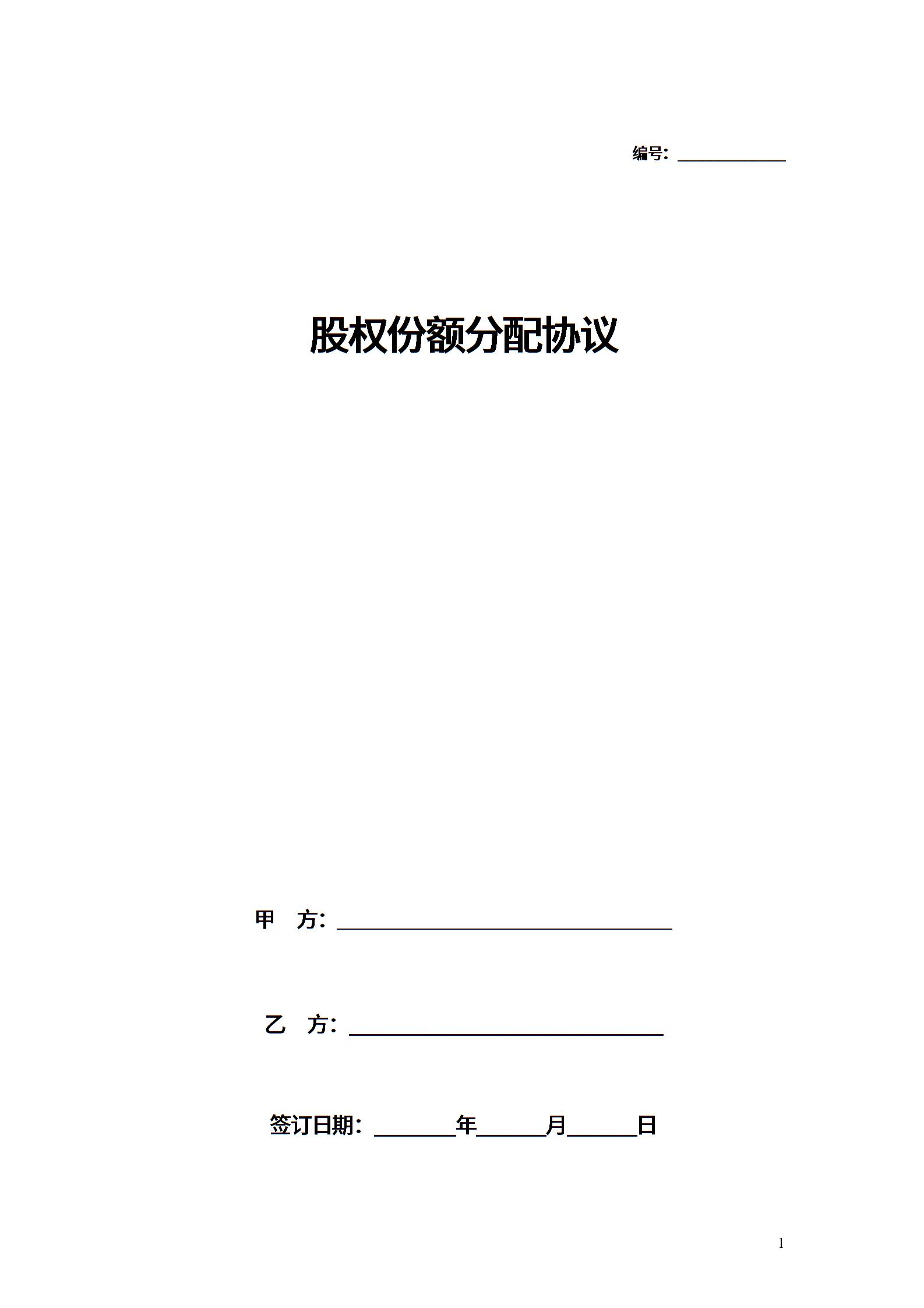 股权份额分配合同协议范本模板