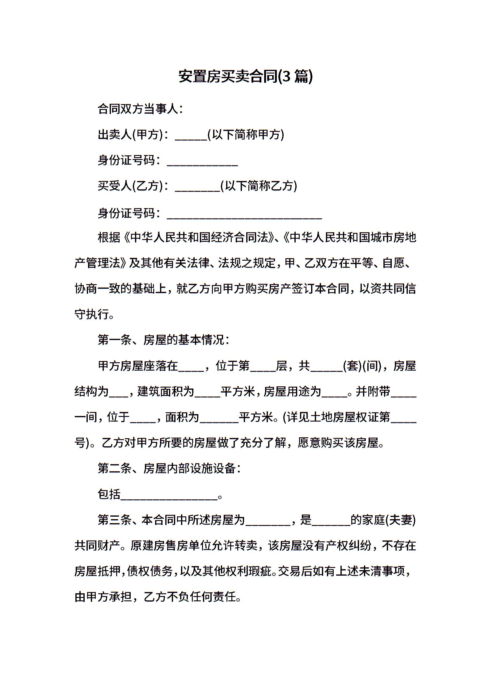 安置房买卖合同(3篇)