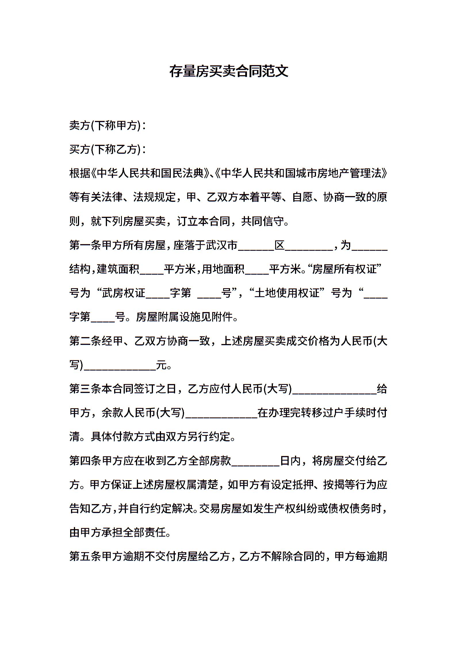 存量房买卖合同范文