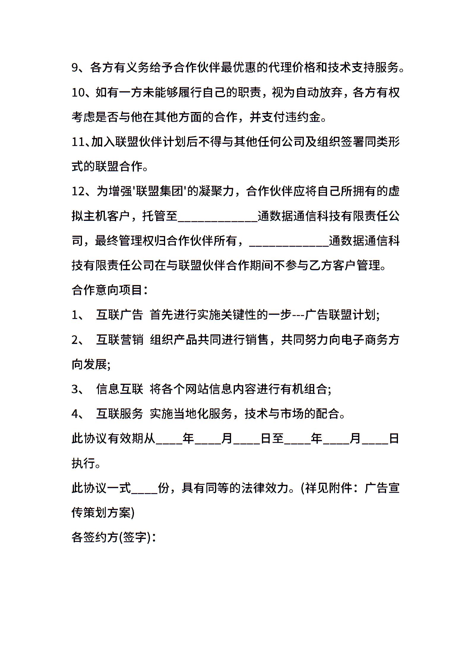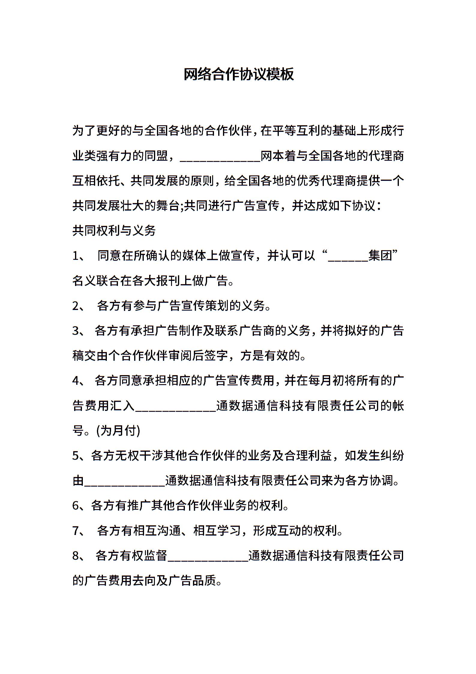 网络合作协议模板
