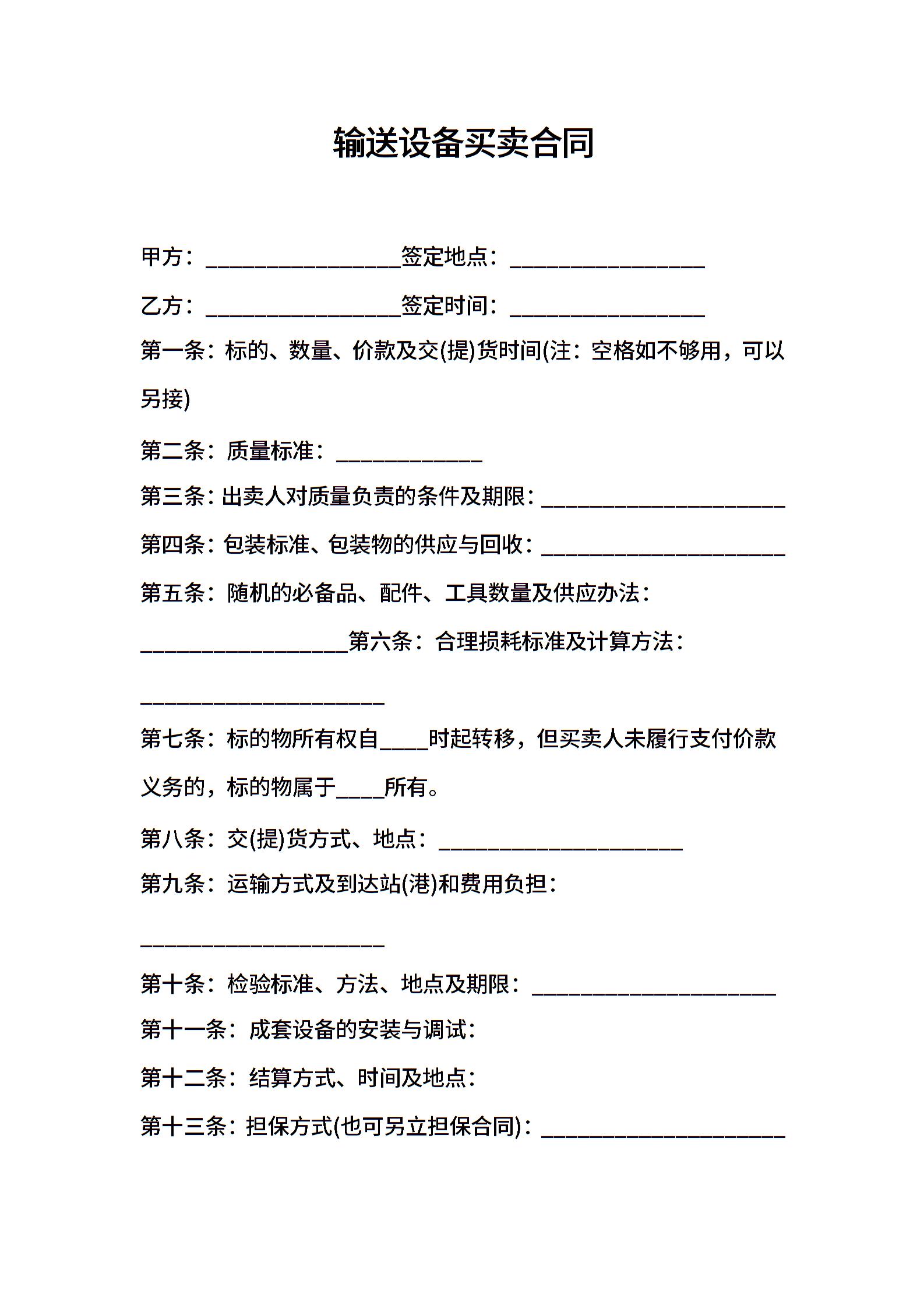 输送设备买卖合同