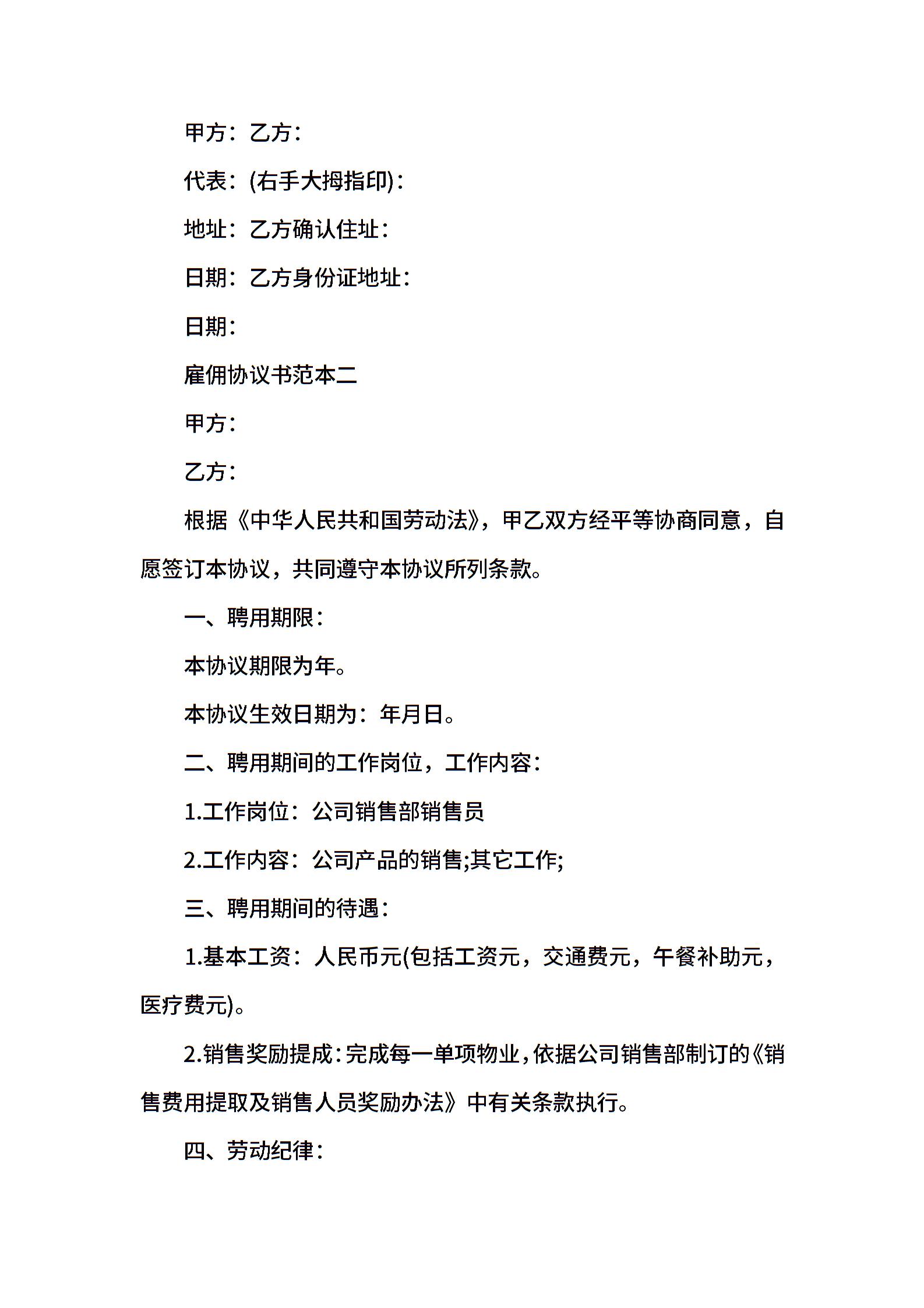 • 分类 聘用合同