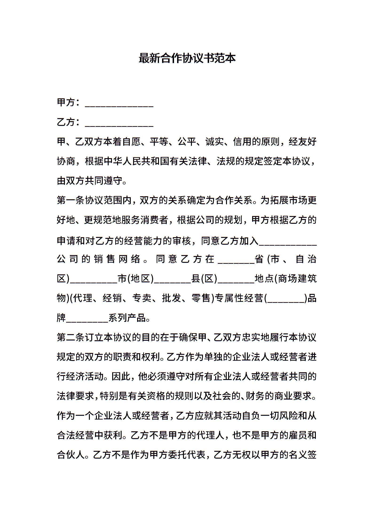 当前位置:量子办公 > 合同模板 > 合作合同 >